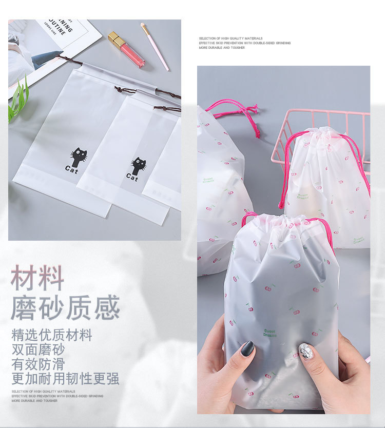 재고 도매 투명 프로스트 베어 drawstring 포켓 여행 보관 가방 의류 신발 마무리 포장 가방