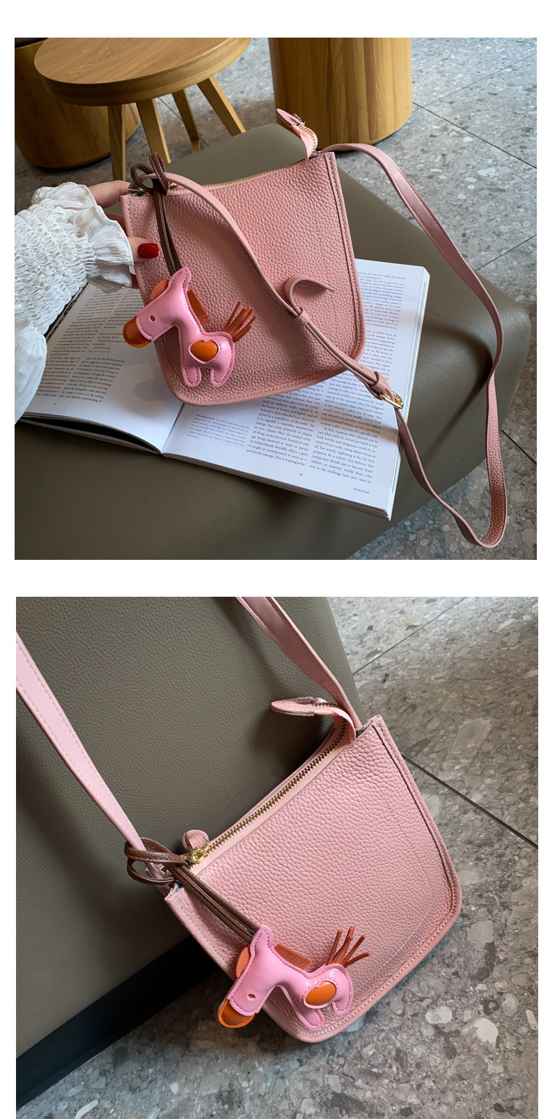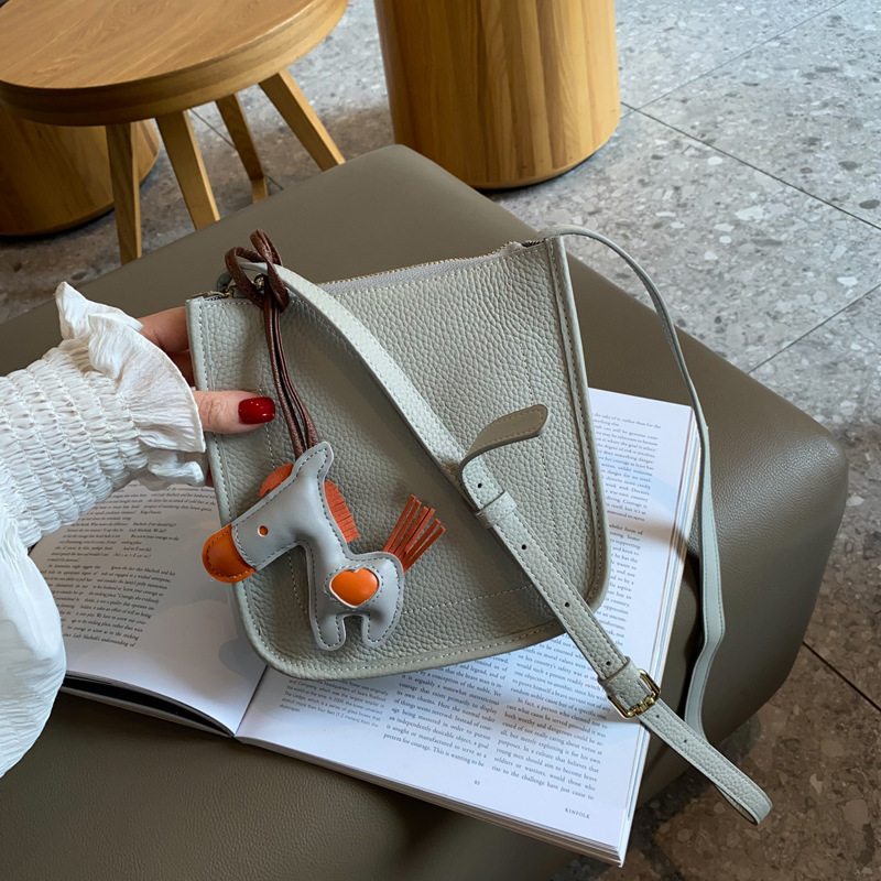 귀여운 포니 펜던트 2024 크로스 바디 어깨 작은 사각형 가방 틈새 간단한 Cowhide 대용량 리치 패턴 여성용 가방스토어 가기
