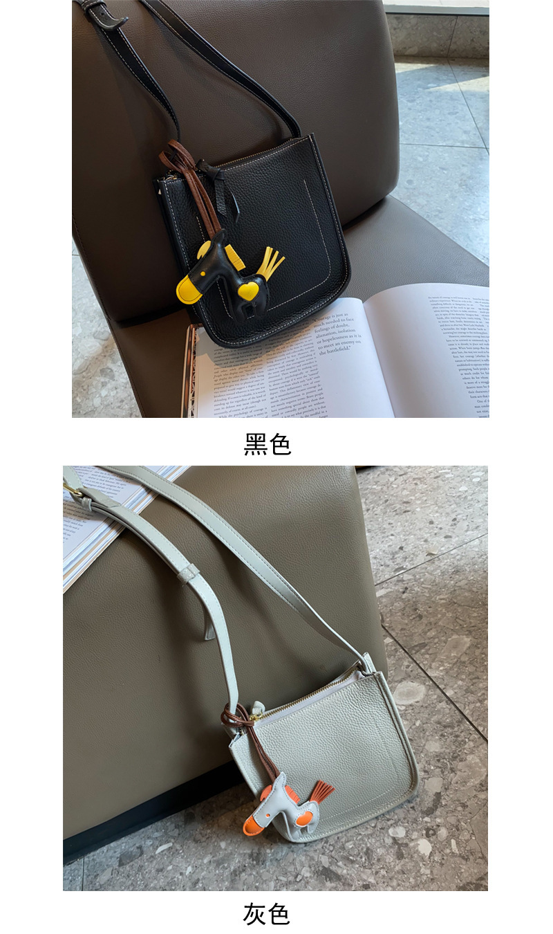 귀여운 포니 펜던트 2024 크로스 바디 어깨 작은 사각형 가방 틈새 간단한 Cowhide 대용량 리치 패턴 여성용 가방