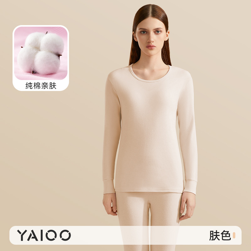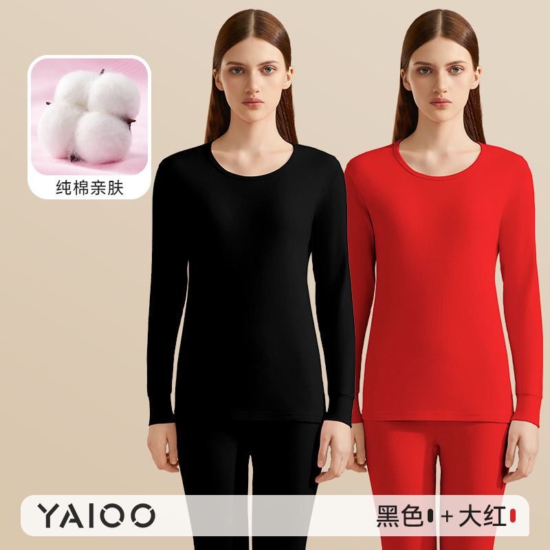Yalu 가을 옷과 바지 세트 여성면 얇은 면 양모 베이스 셔츠 열 속옷 여성면 스웨터와 바지스토어 가기