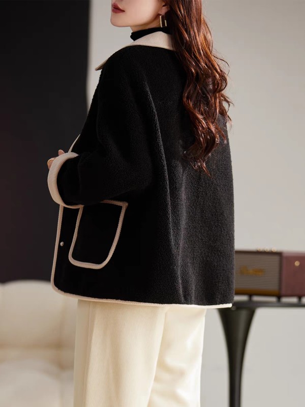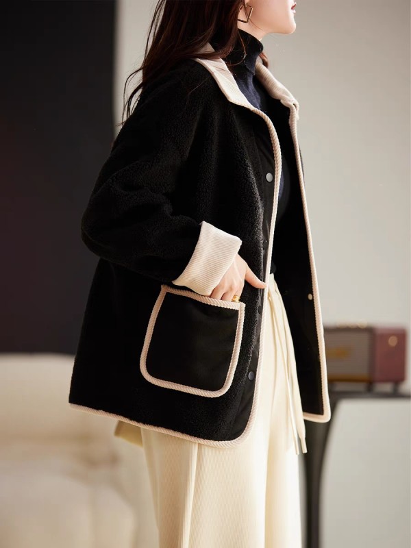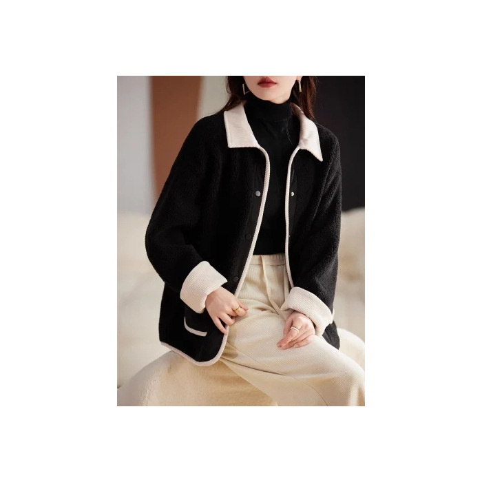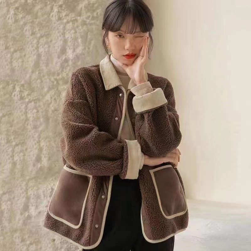 고급 디자인 감각 틈새 모방 양고기 양모 코트 여성 느슨한 캐주얼 서양식 탑 가을과 겨울 2024 새로운스토어 가기