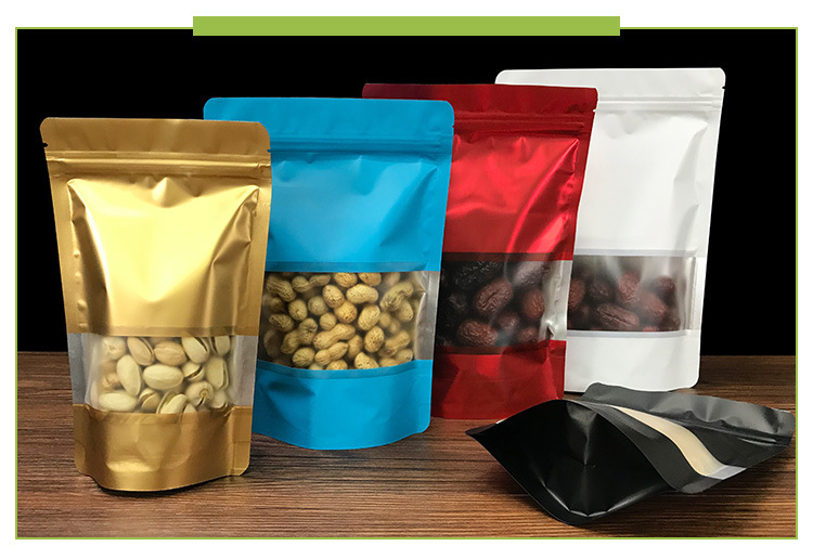 컬러 알루미늄 백 플라스틱 알루미늄 컬러 자체 밀봉 가방 창 식품 등급 포장 가방 도매