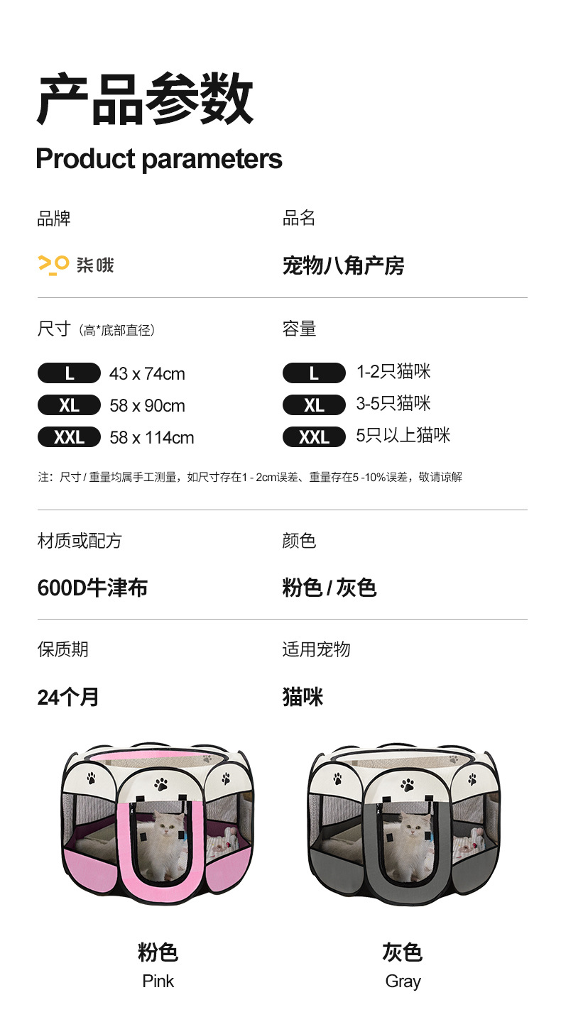 고양이 배달실 여성 고양이 특별 아직 패키지 드라이버 일반 폐쇄 고양이와 개 사육장 텐트 애완 동물 팔각형 케이지 울타리
