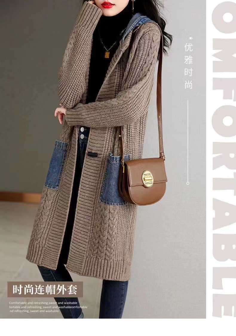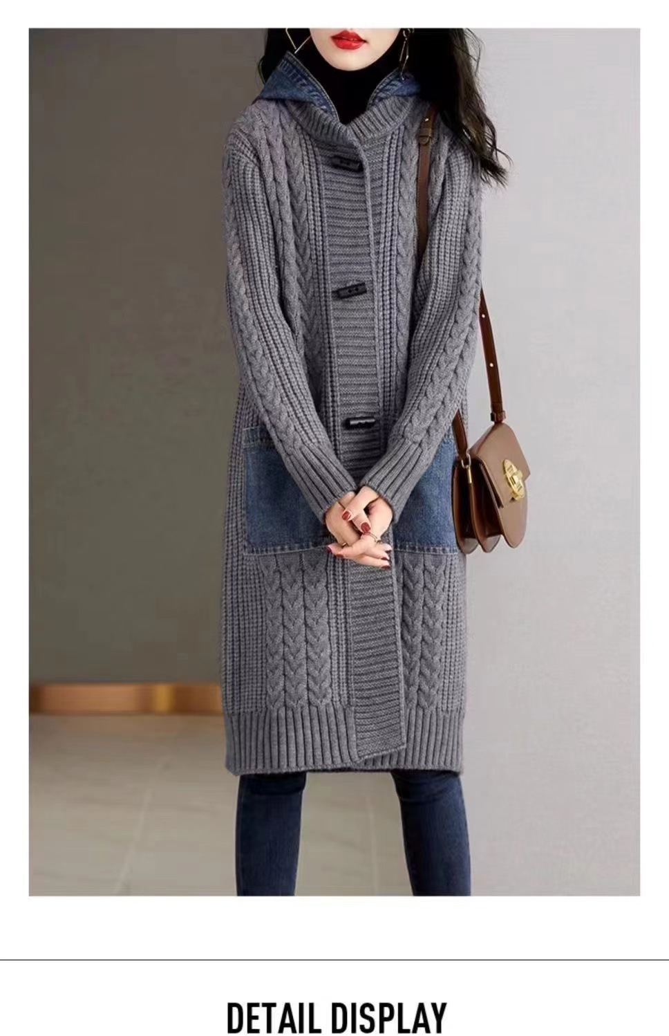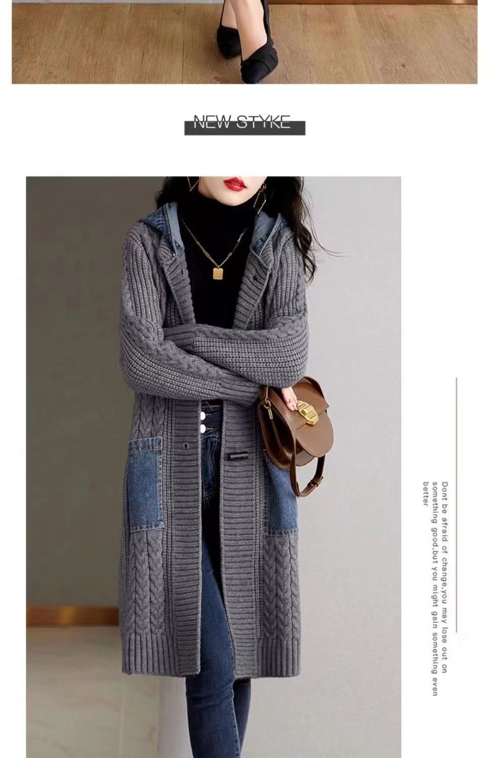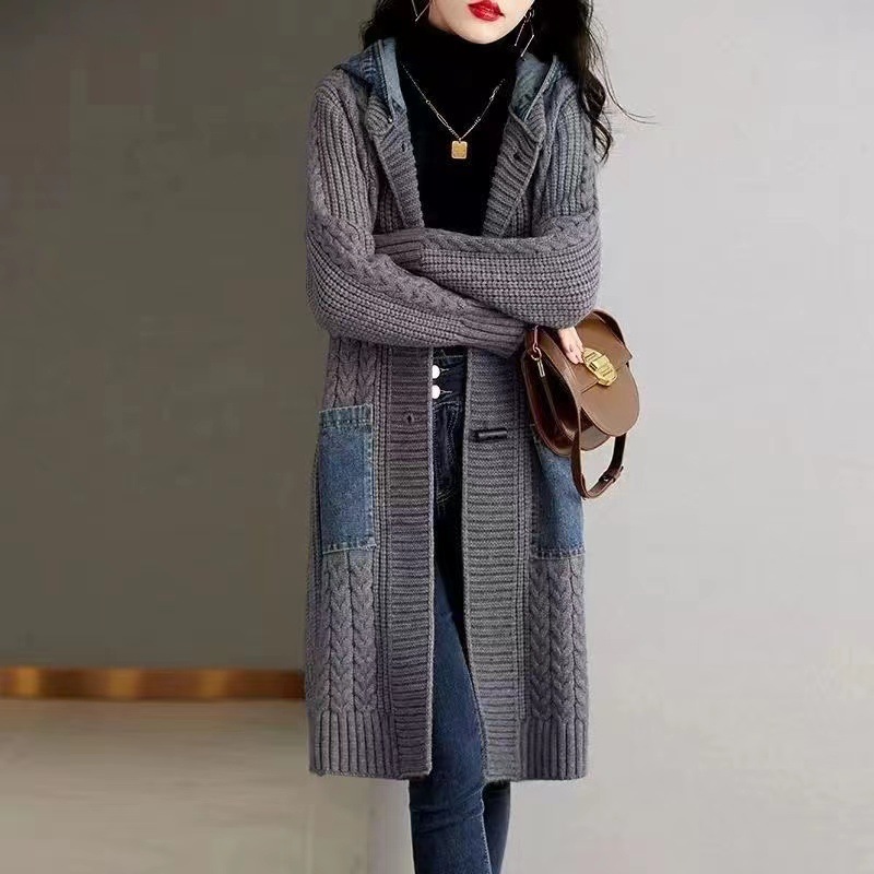 스웨터 재킷 여성용 봄 가을 카디건 중간 길이 2025 신상 스타일리시 루즈핏 외투 후드 니트 상의스토어 가기