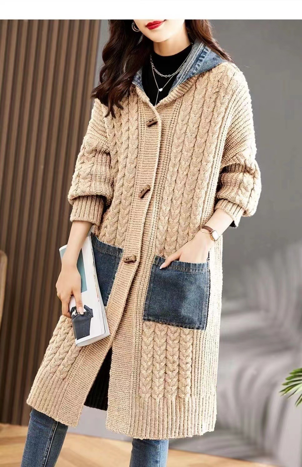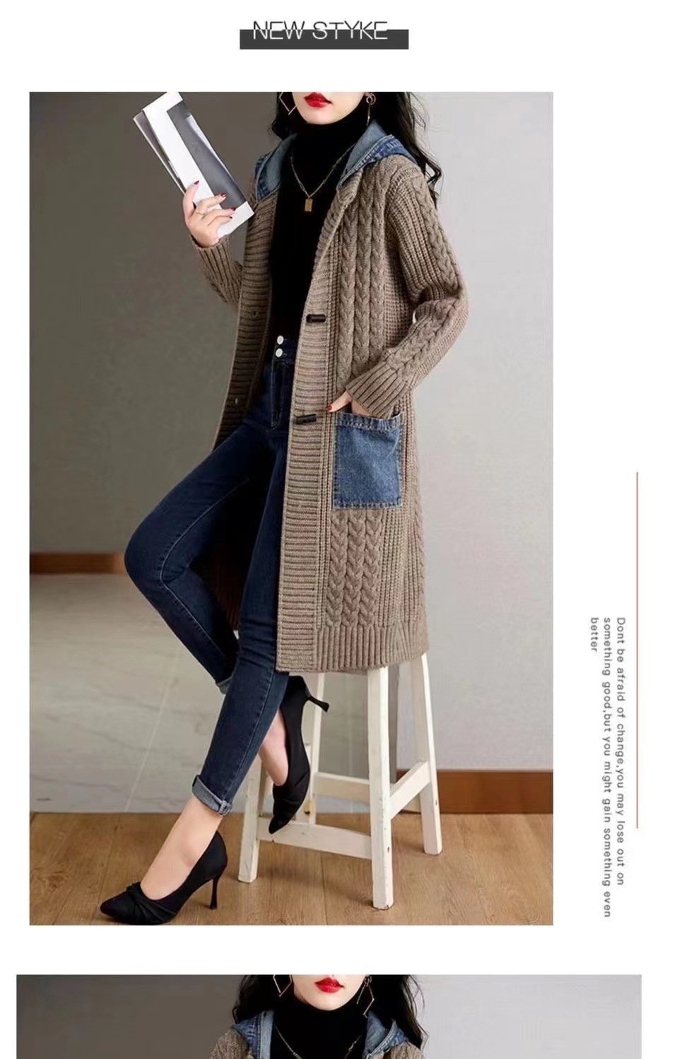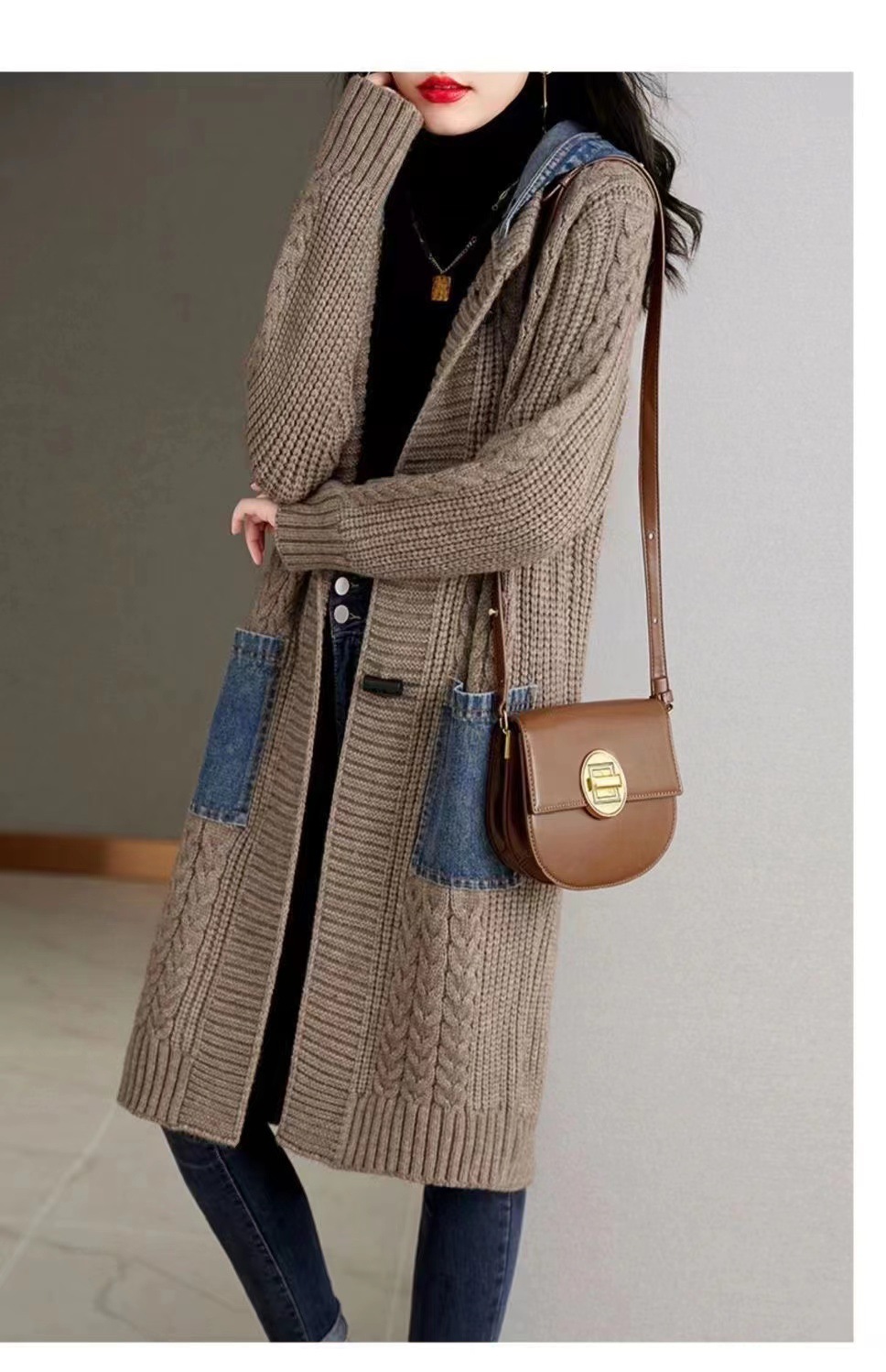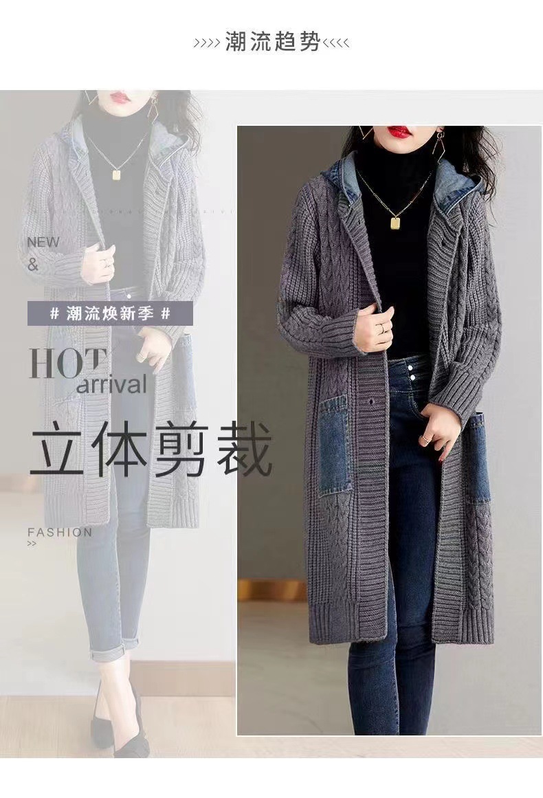 스웨터 재킷 여성용 봄 가을 카디건 중간 길이 2025 신상 스타일리시 루즈핏 외투 후드 니트 상의스토어 가기