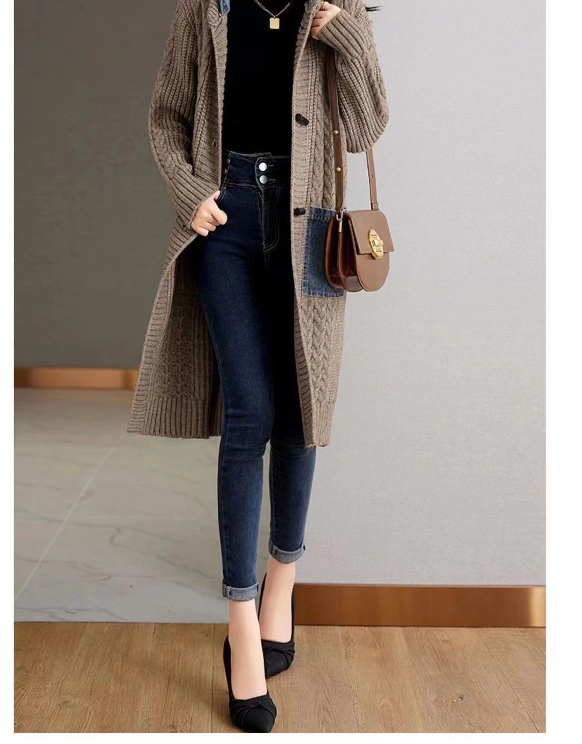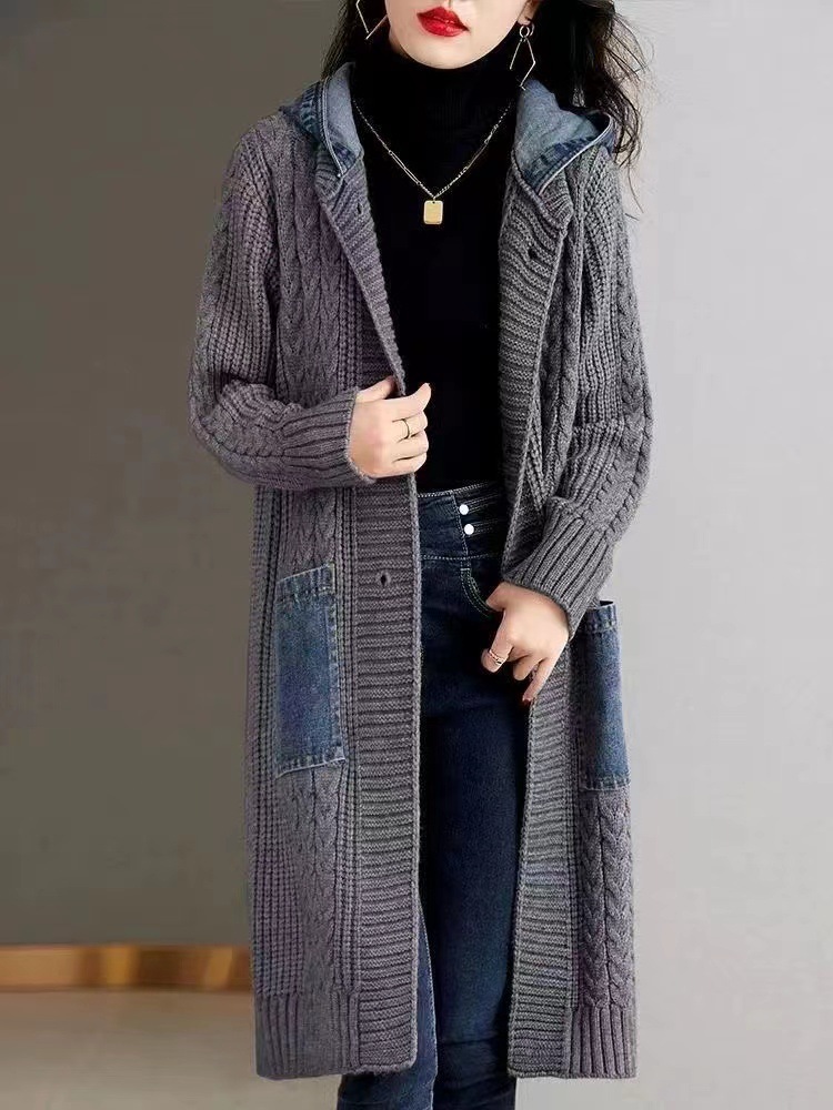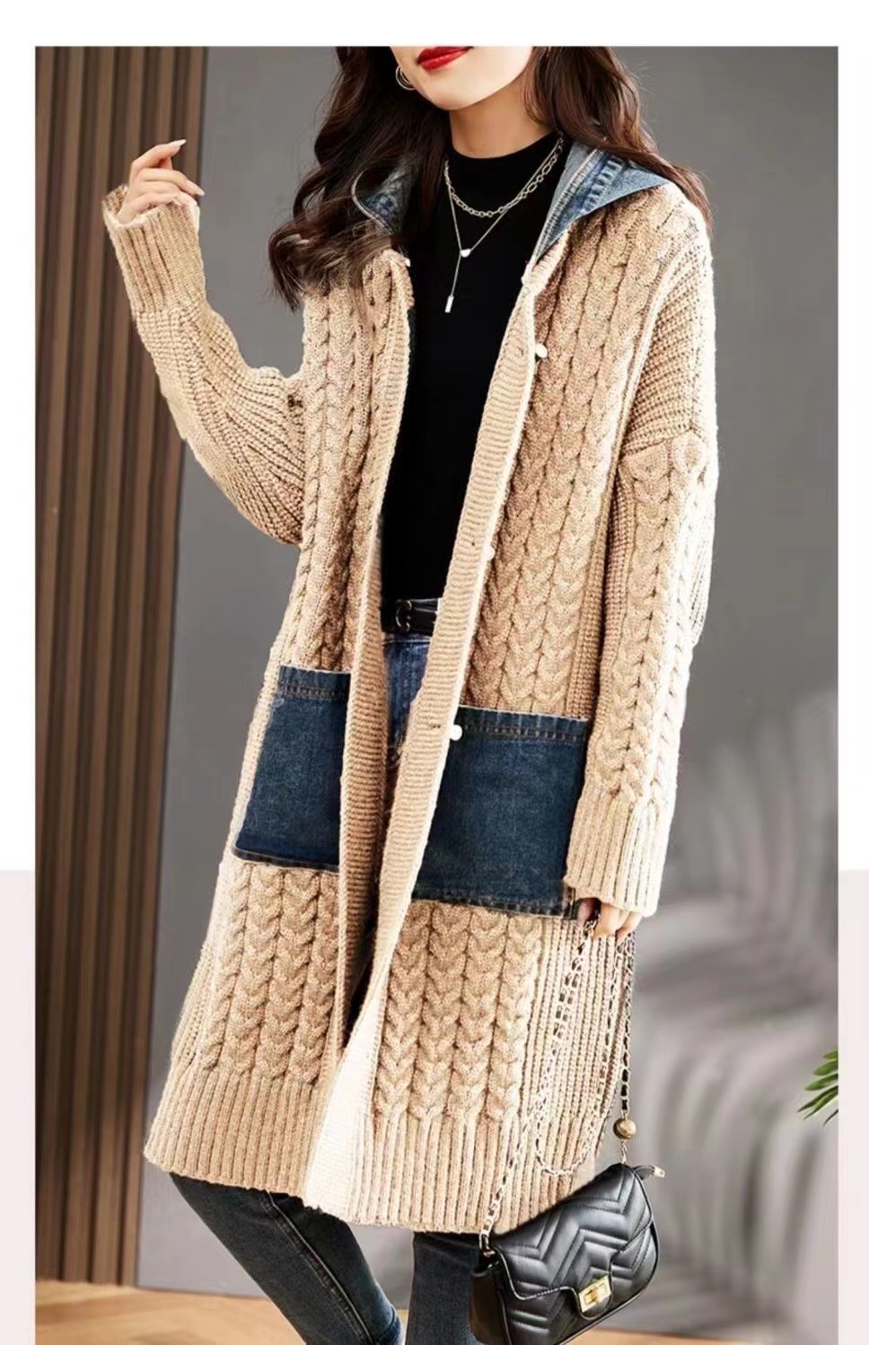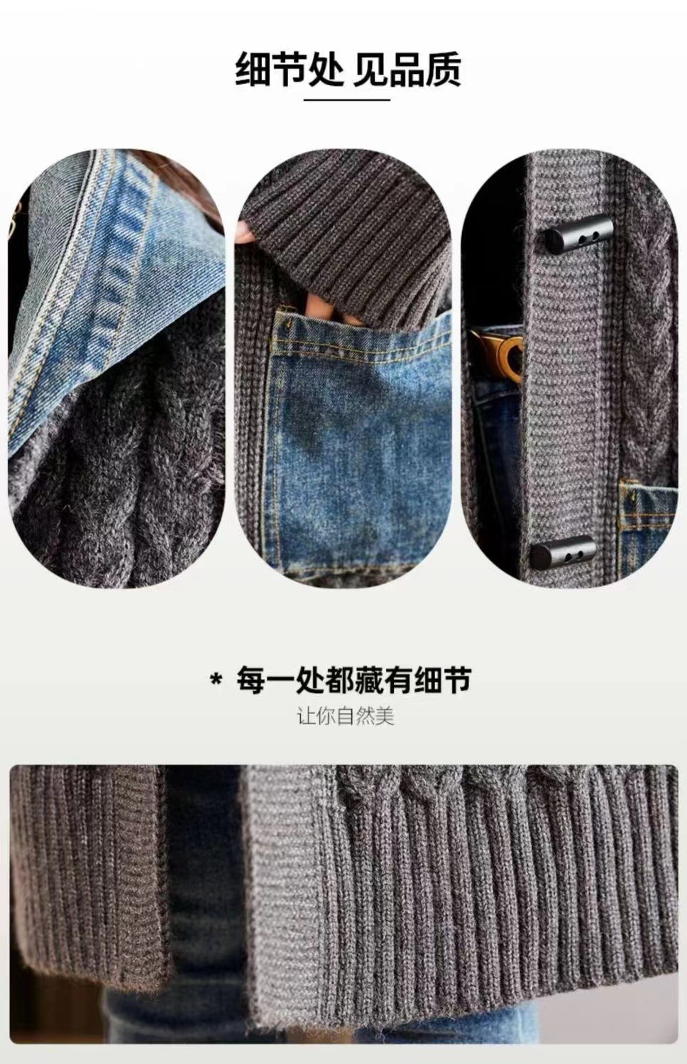 스웨터 재킷 여성용 봄 가을 카디건 중간 길이 2025 신상 스타일리시 루즈핏 외투 후드 니트 상의스토어 가기