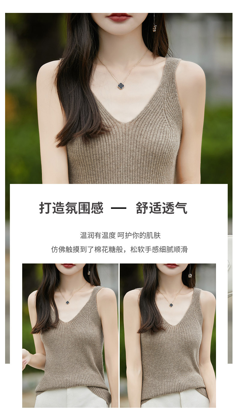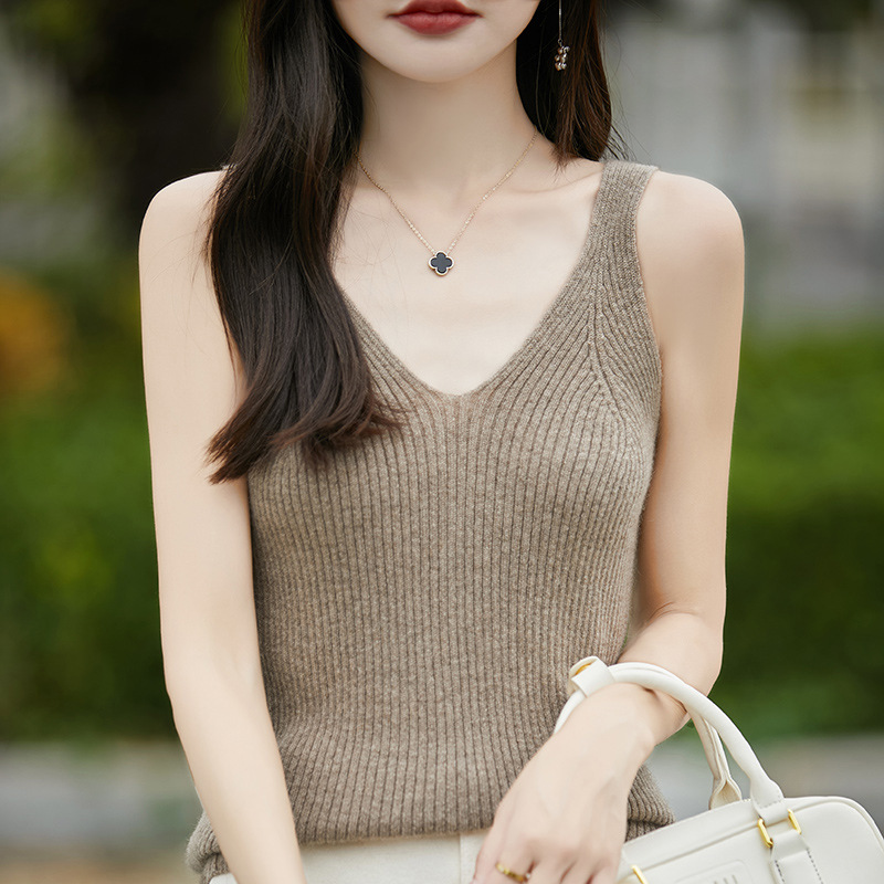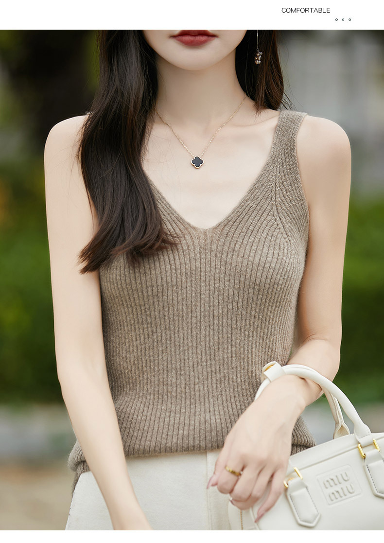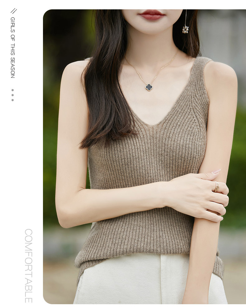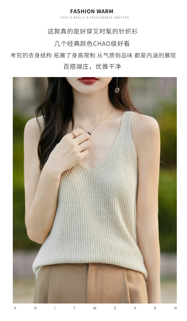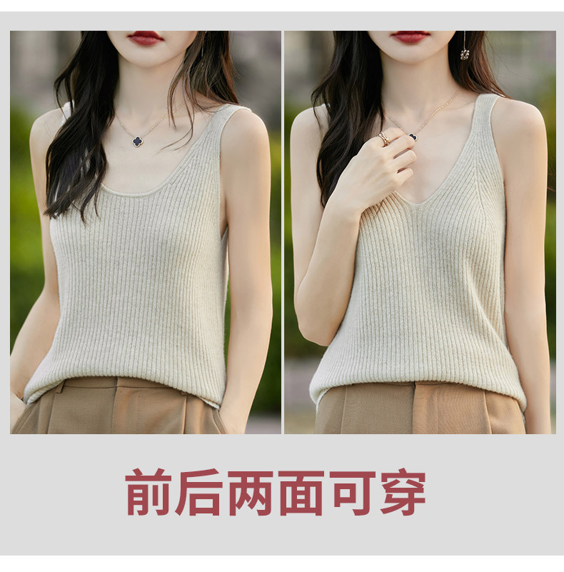 2024 가을 새 니트웨어 V 넥 슬링 민소매 조끼 여성 전면 및 뒷면 착용 슬림 핏 내베이스 배치 헤어