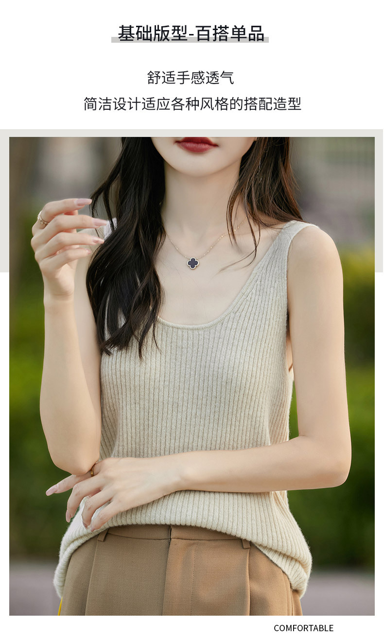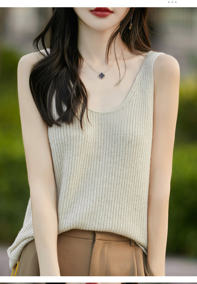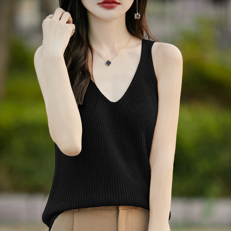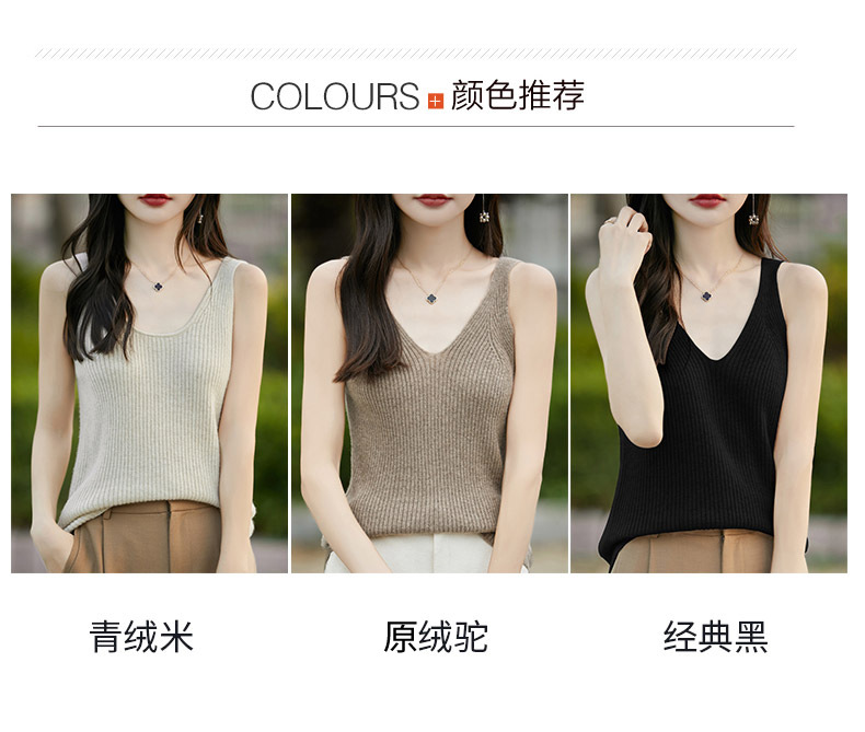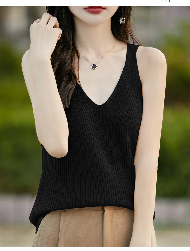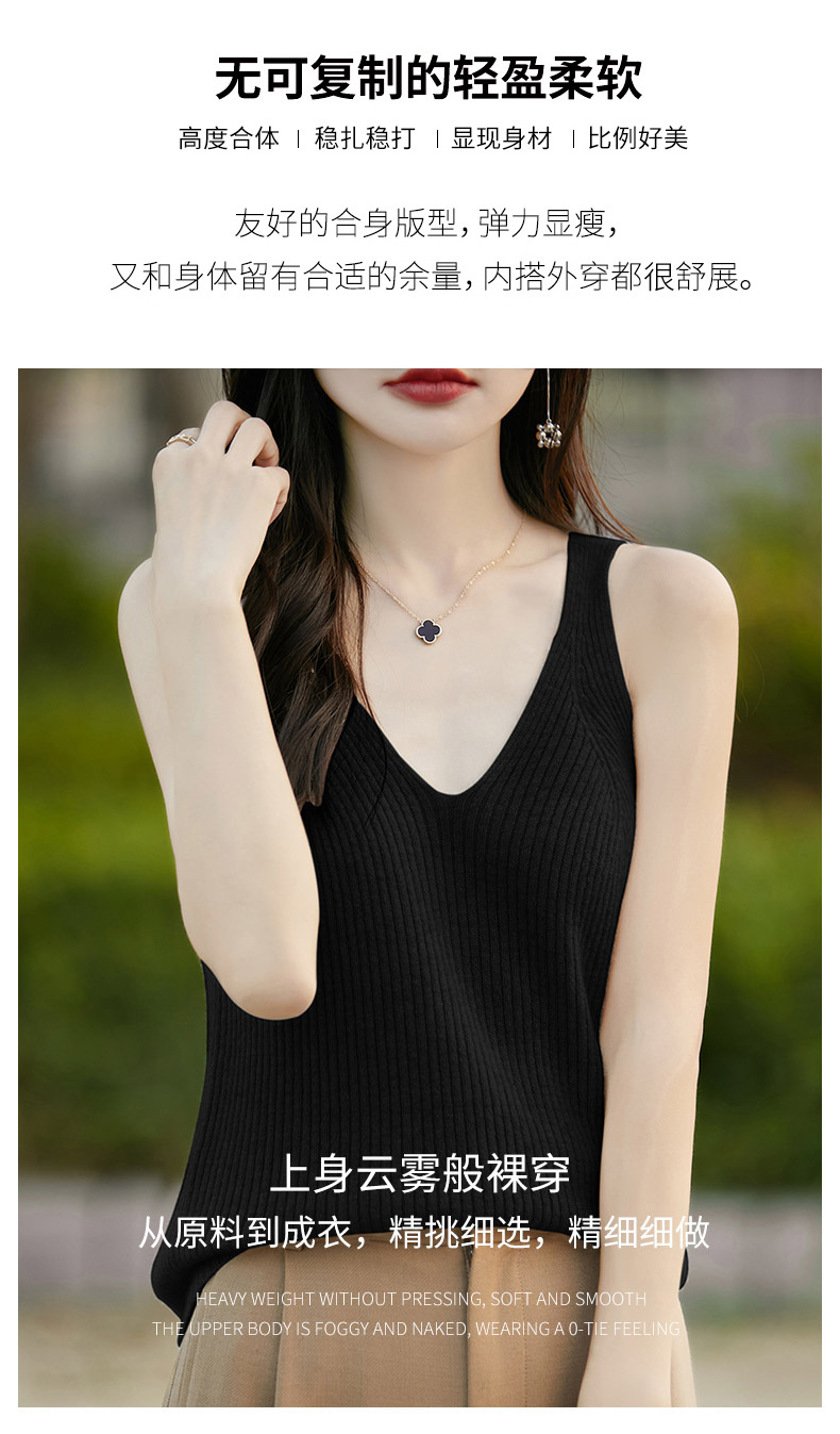 2024 가을 새 니트웨어 V 넥 슬링 민소매 조끼 여성 전면 및 뒷면 착용 슬림 핏 내베이스 배치 헤어