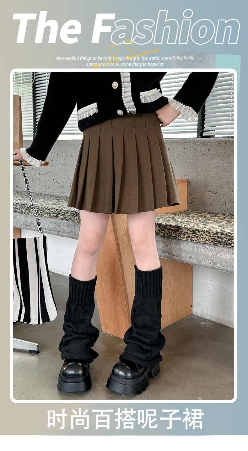 소녀 가을과 겨울 모직 주름 치마 2024 새로운 스타일 큰 어린이 치마 아이들의 두꺼운 유행 치마스토어 가기