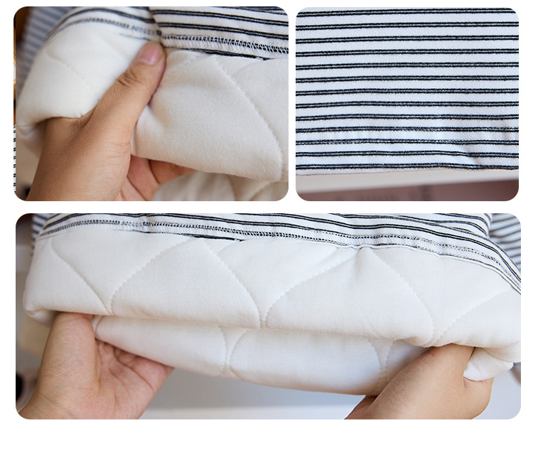 • 따뜻한 벨벳 스트라이프 바텀 셔츠-핑크