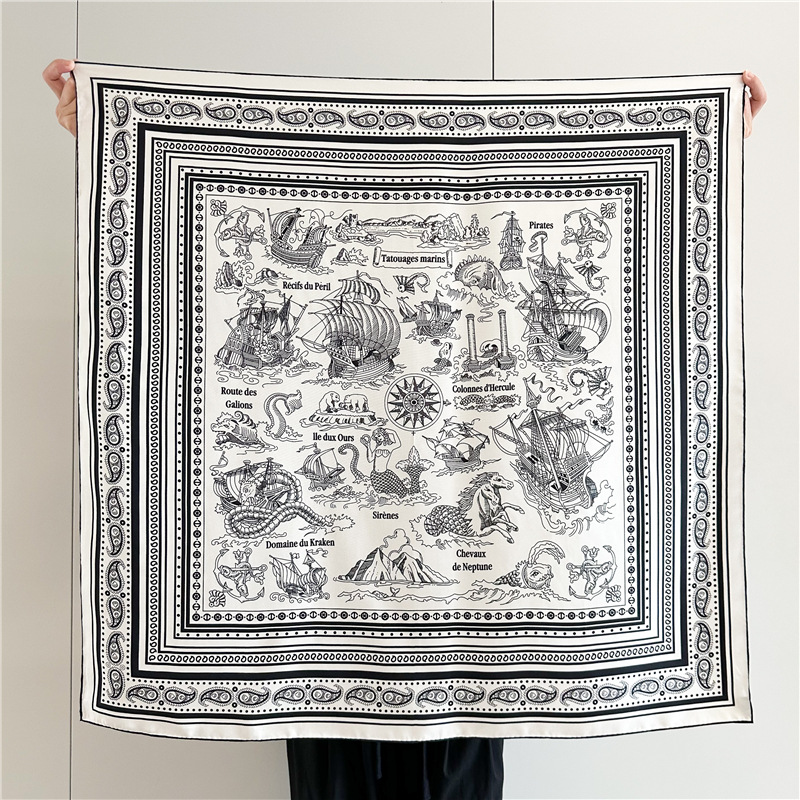 선원 문신 실크 트윌 실크 14 Mm 대형 스퀘어 스카프 봄과 가을 새로운 뽕나무 실크 스카프 여성 목도리 스카프스토어 가기