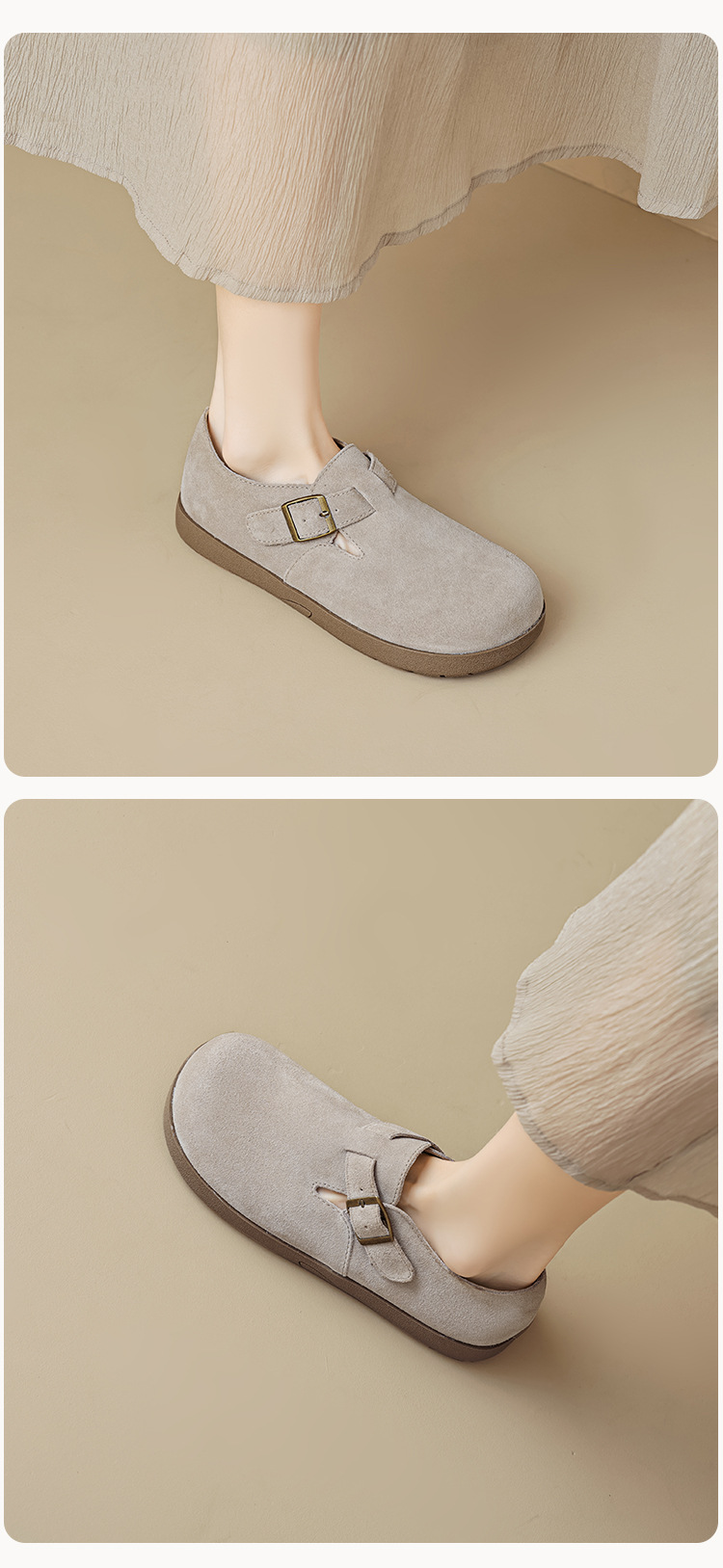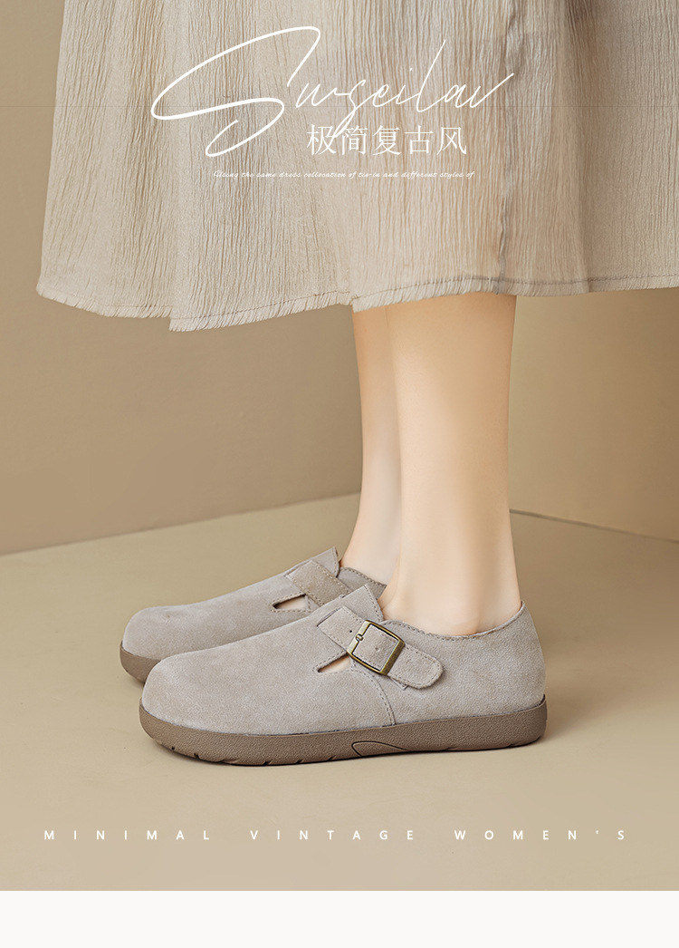 Weiwei Girl 959-55 가죽 Birkenthal 신발 여성 레트로 두꺼운 밑창 Cowhide 슬립 온 부드러운 밑창 Birkenthal Outer Wear 신발스토어 가기