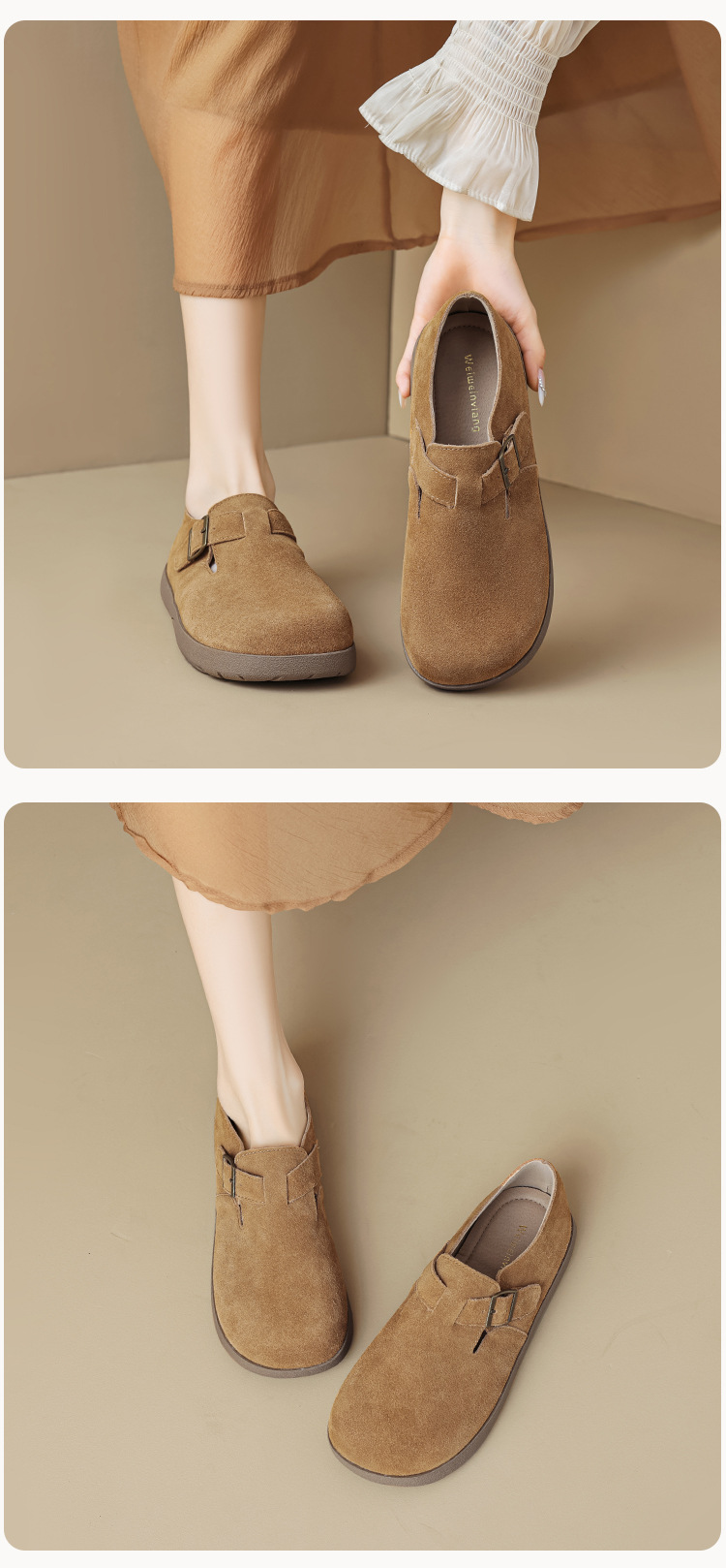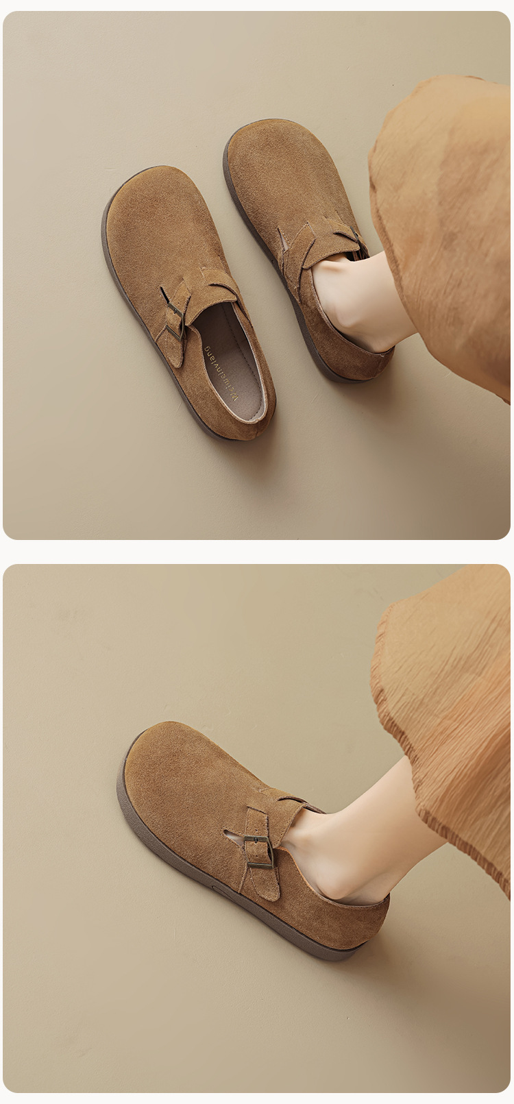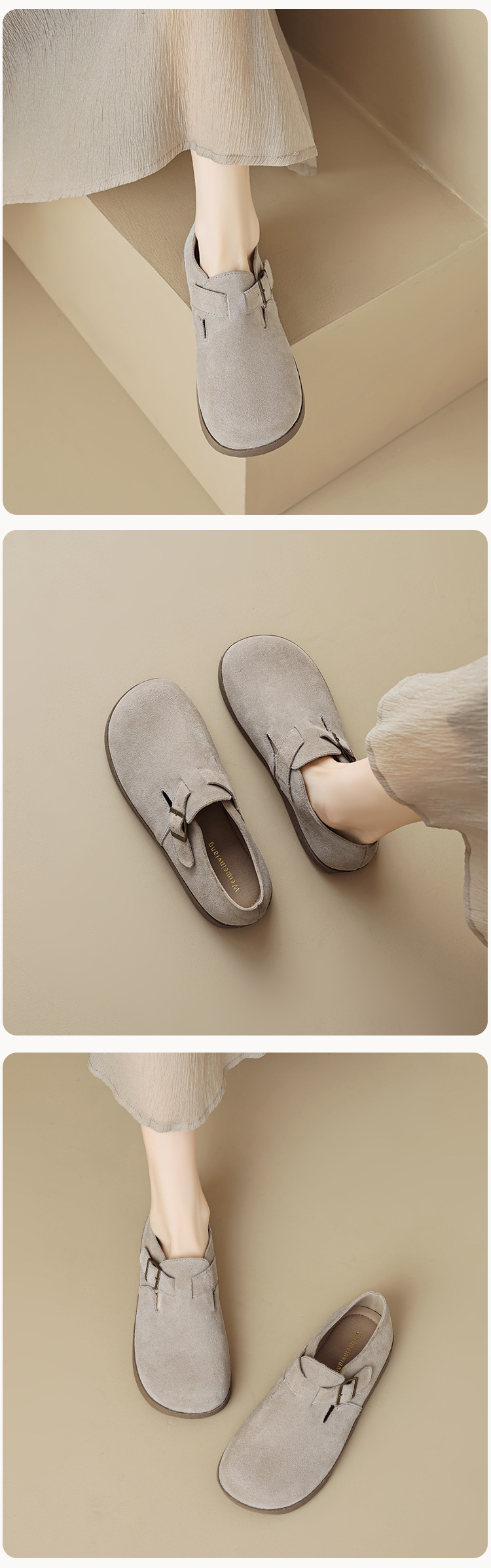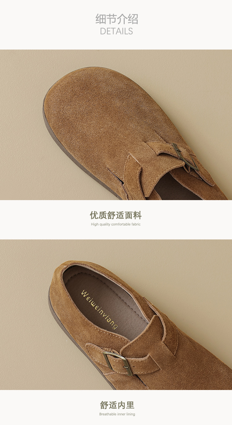 Weiwei Girl 959-55 가죽 Birkenthal 신발 여성 레트로 두꺼운 밑창 Cowhide 슬립 온 부드러운 밑창 Birkenthal Outer Wear 신발