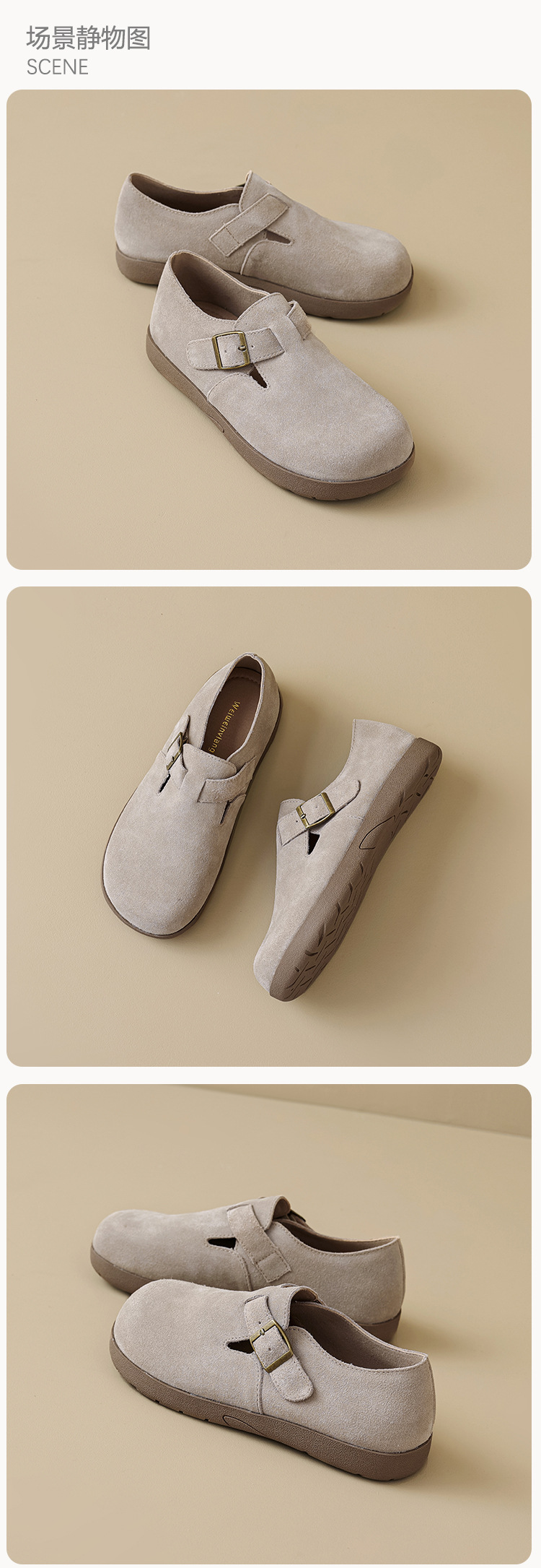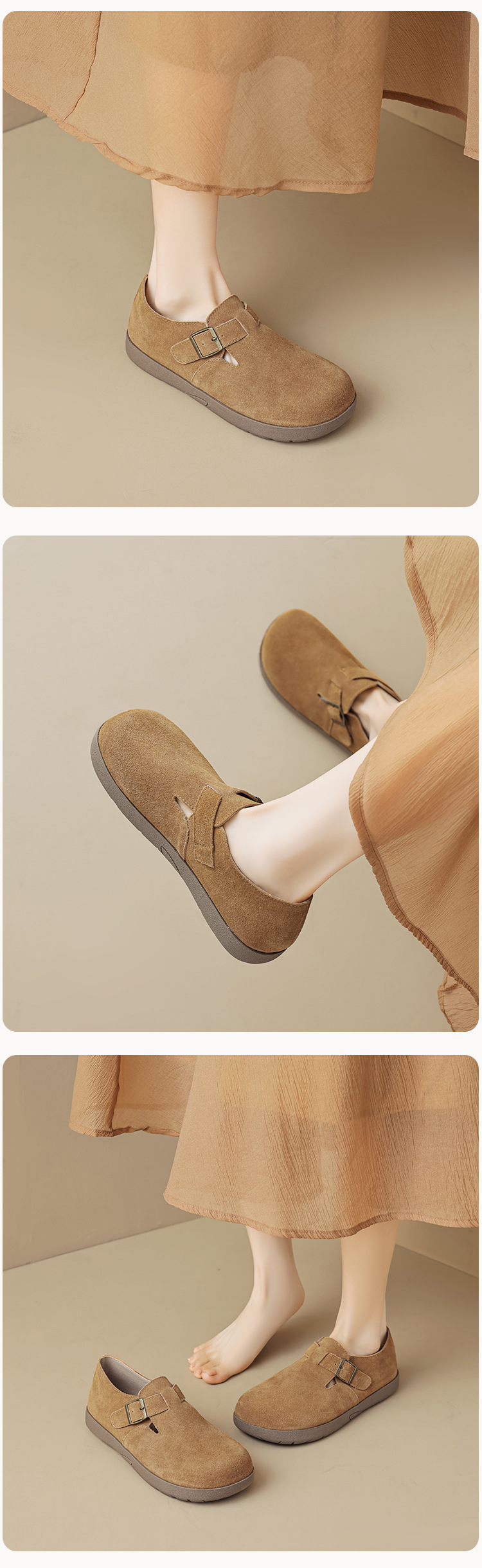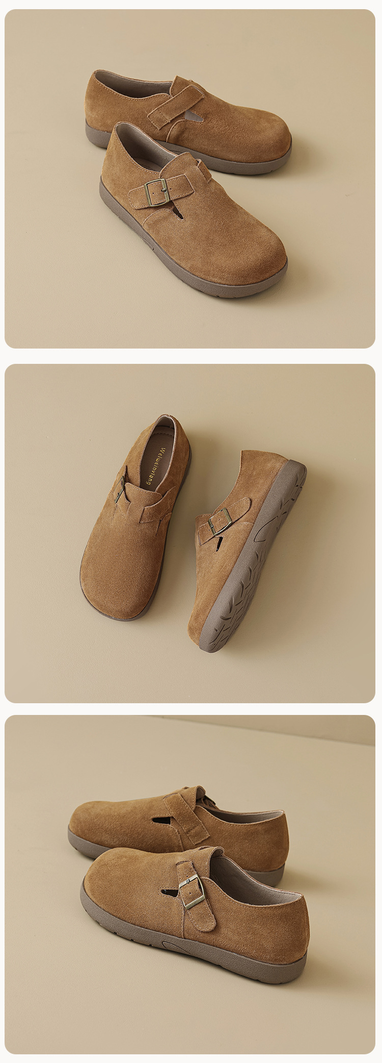Weiwei Girl 959-55 가죽 Birkenthal 신발 여성 레트로 두꺼운 밑창 Cowhide 슬립 온 부드러운 밑창 Birkenthal Outer Wear 신발