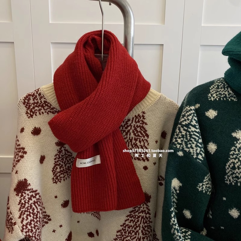 화성 그린/클라인 블루 단색 스카프 화이트 울 스카프 한국 겨울 새 커플 남녀