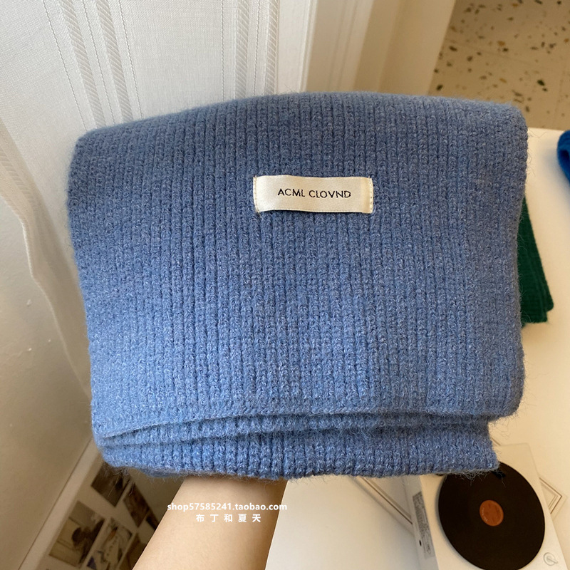 화성 그린/클라인 블루 단색 스카프 화이트 울 스카프 한국 겨울 새 커플 남녀스토어 가기