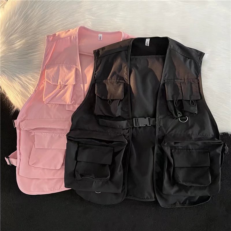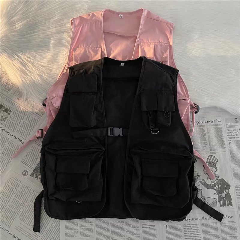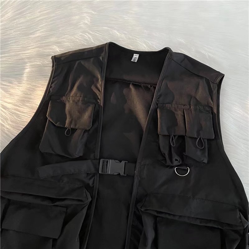 일본 봄과 가을 패션 브랜드 기능성 전술 툴링 멀티 포켓 얇은 조끼 DIY 로고 웨이스트 코트 재킷