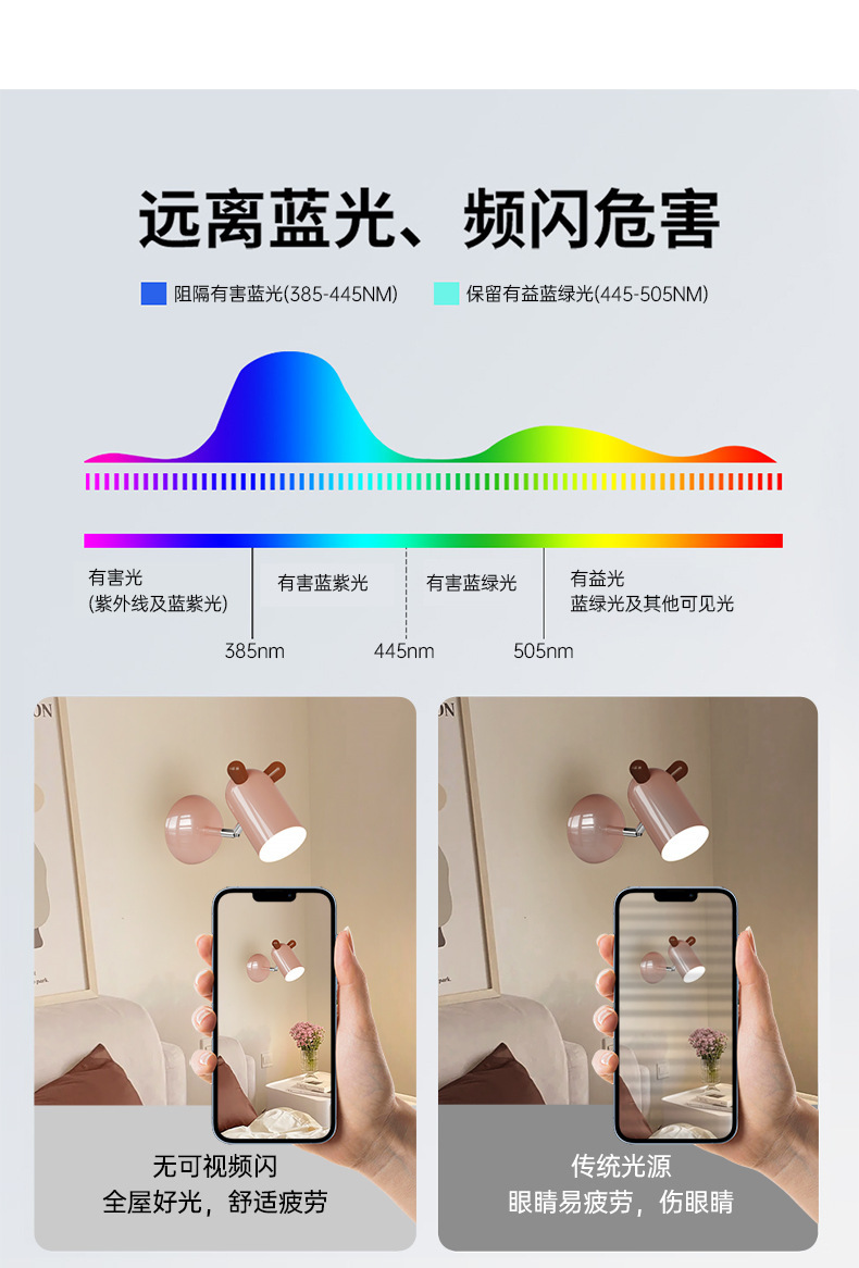 어린이 방 벽 램프 크림 스타일 만화 따뜻한 소년과 소녀 방 침실 눈 보호 침대 옆 램프 배경 벽 램프스토어 가기