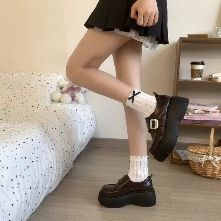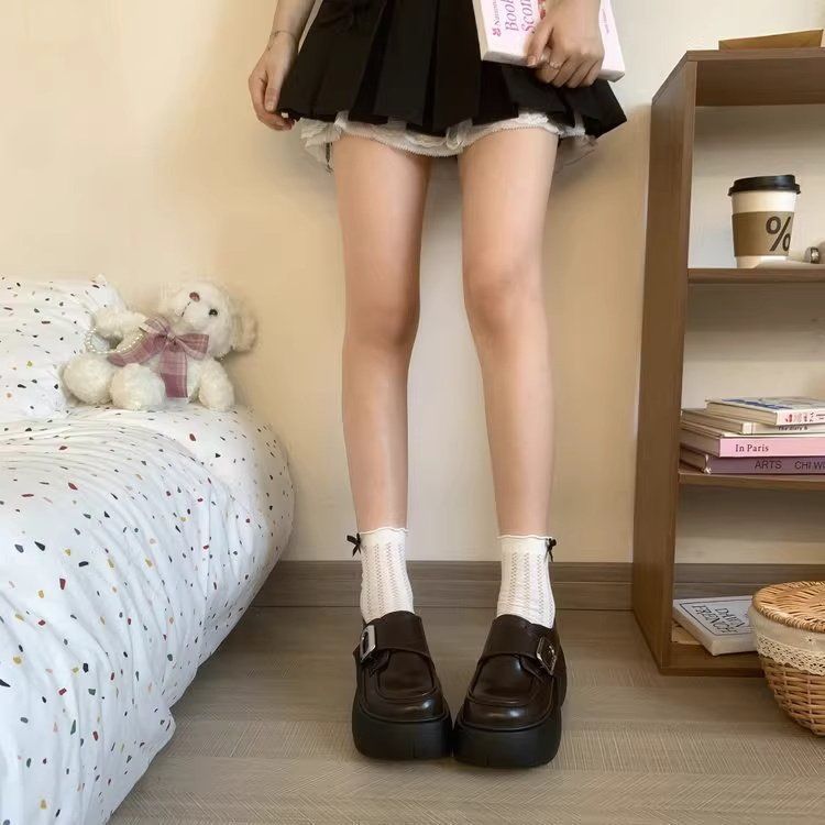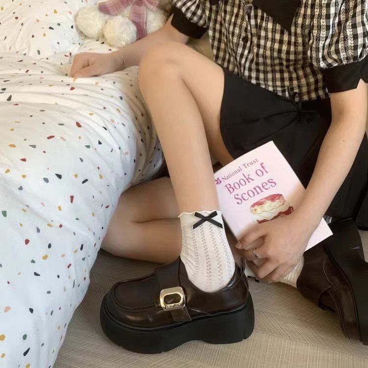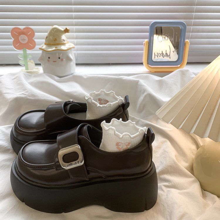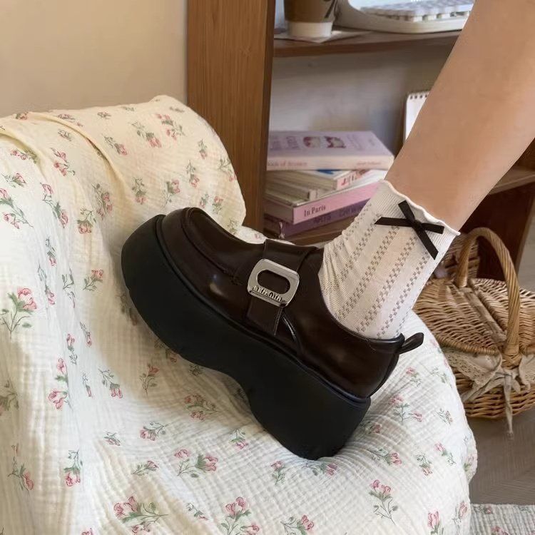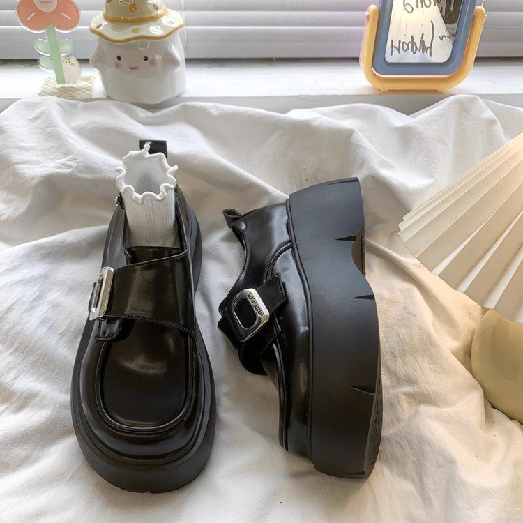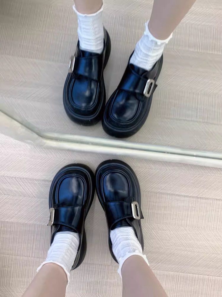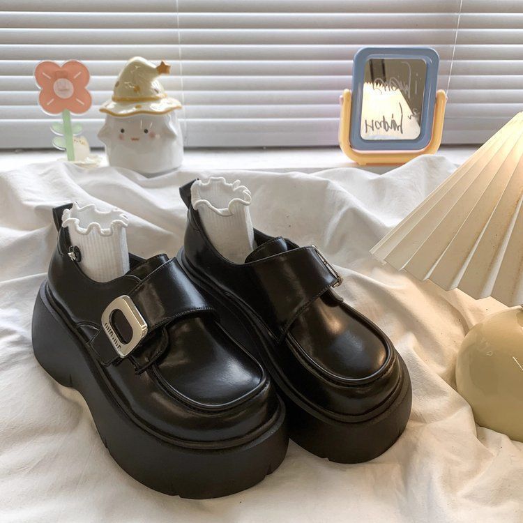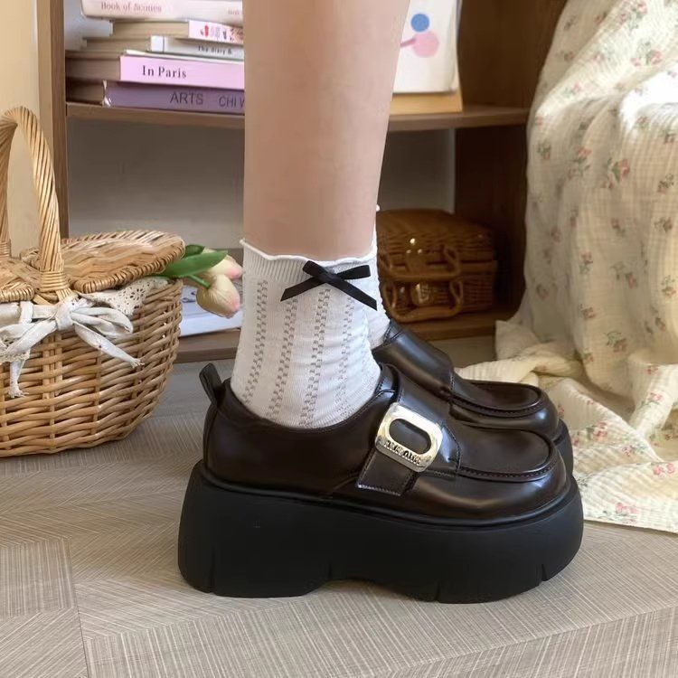 두꺼운 바닥 큰 머리 프랑스 Lefu 신발 2024 여름 새로운 복고풍 영국 캠퍼스 스타일 스커트 신발