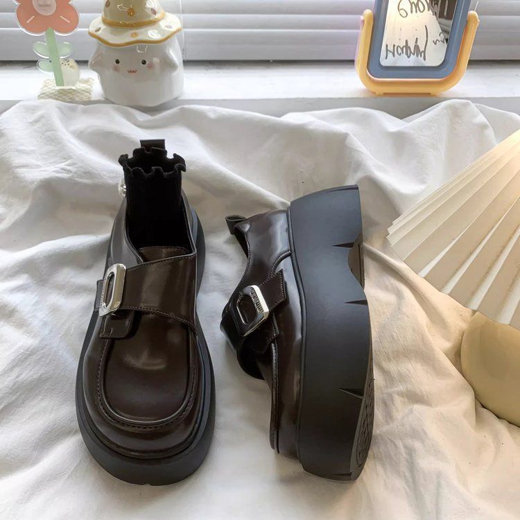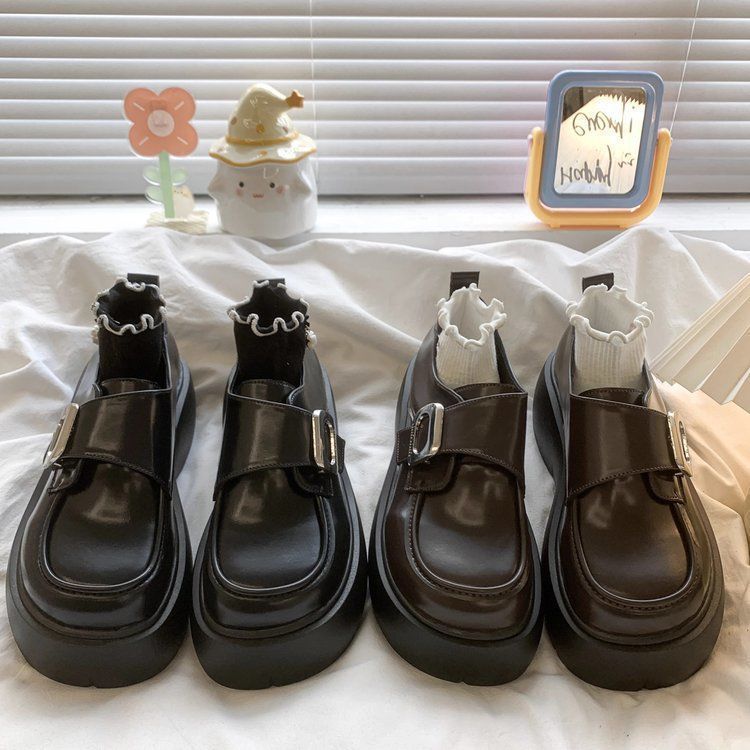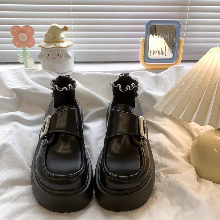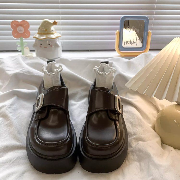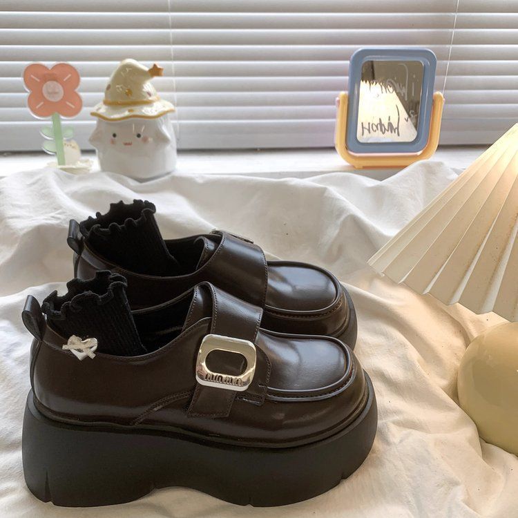 두꺼운 바닥 큰 머리 프랑스 Lefu 신발 2024 여름 새로운 복고풍 영국 캠퍼스 스타일 스커트 신발스토어 가기