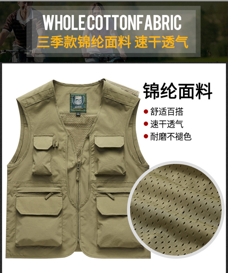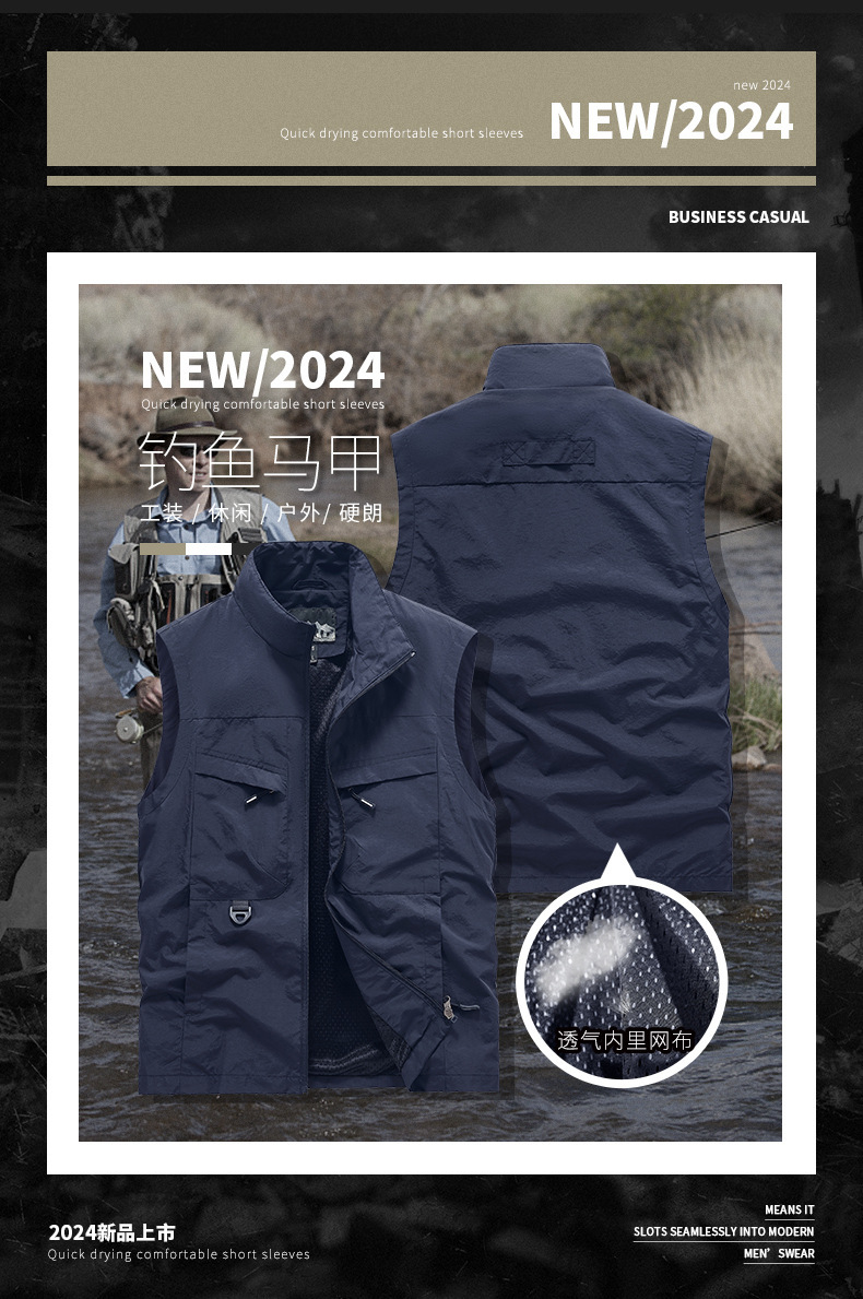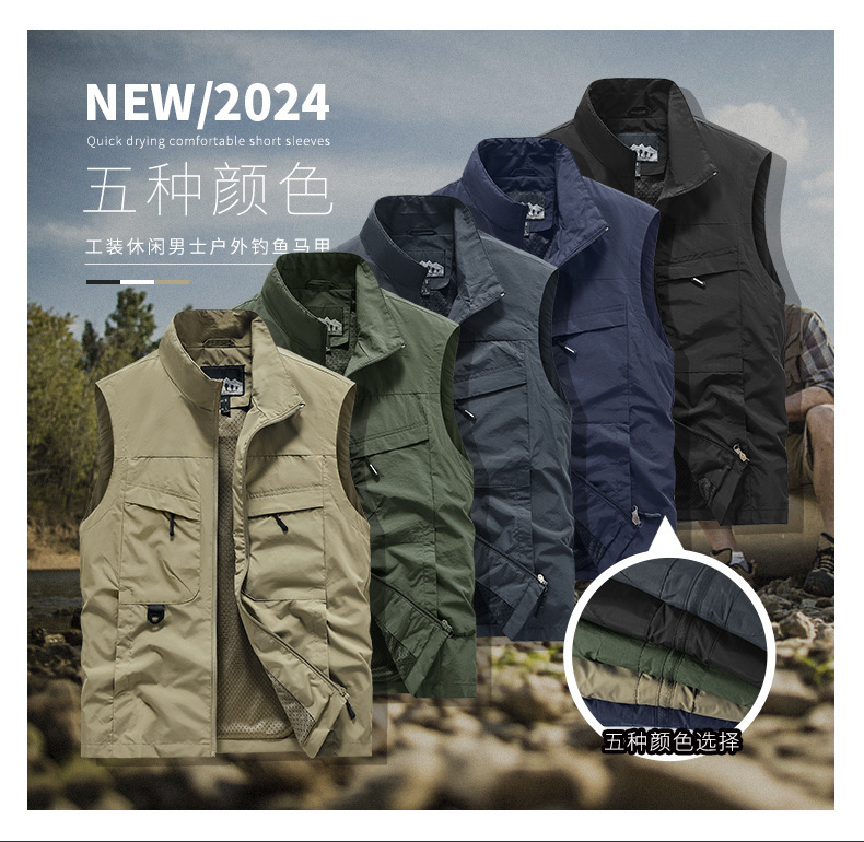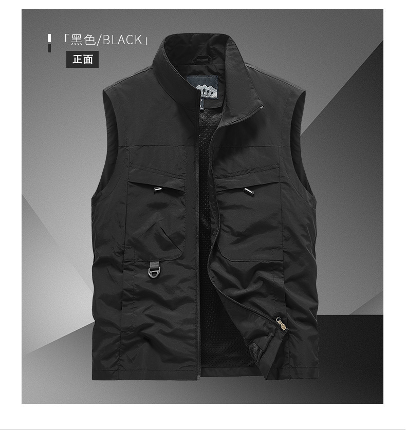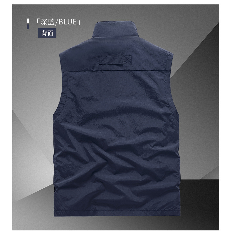 Four Seasons 중년 및 노인 남성 조끼 얇은 아빠 민소매 칼라 멀티 포켓 빠른 건조 조끼 국경 간 플러스 사이즈 Waistcoat스토어 가기