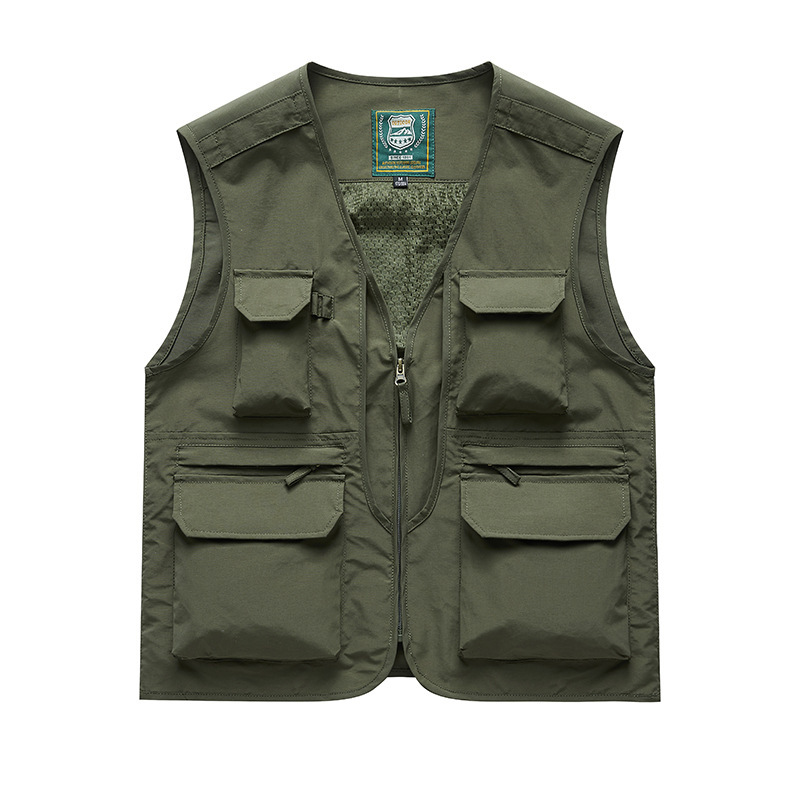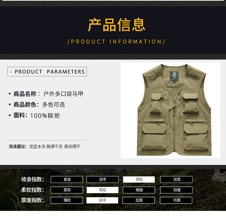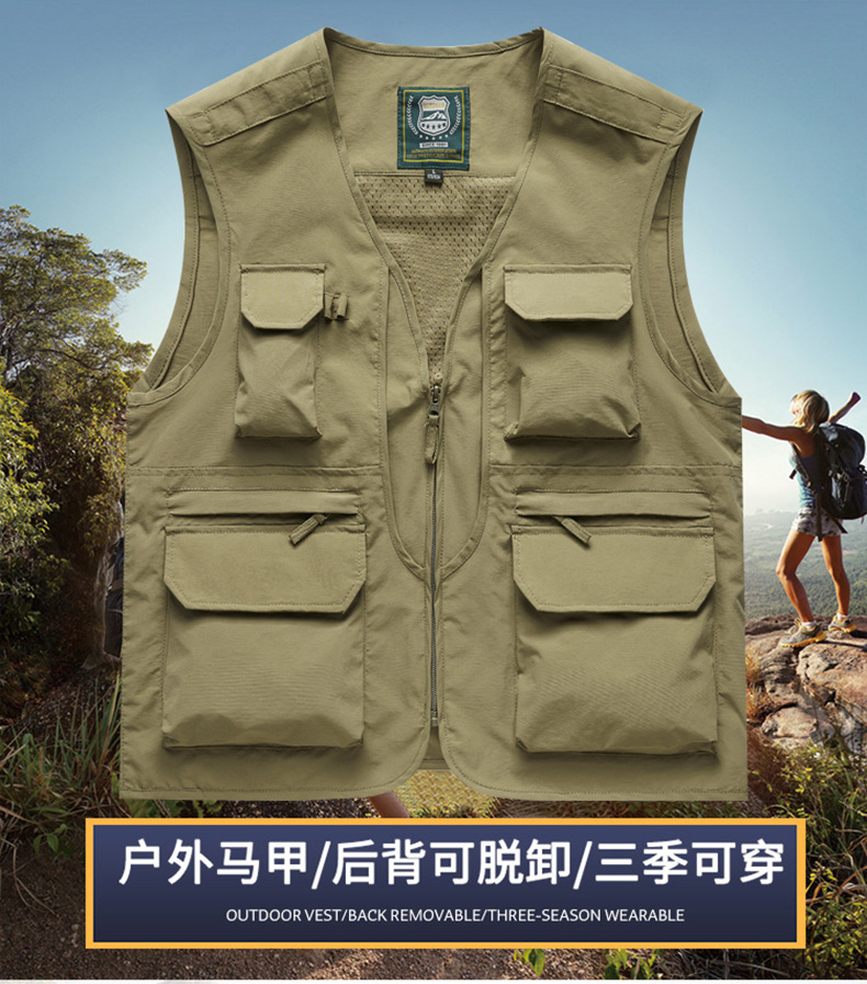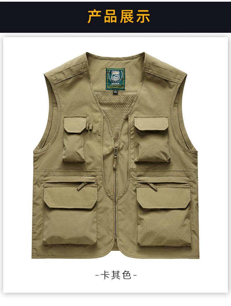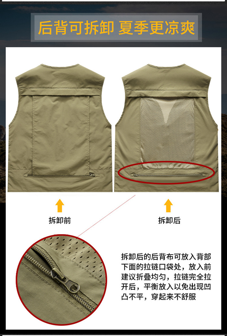 Four Seasons 중년 및 노인 남성 조끼 얇은 아빠 민소매 칼라 멀티 포켓 빠른 건조 조끼 국경 간 플러스 사이즈 Waistcoat스토어 가기
