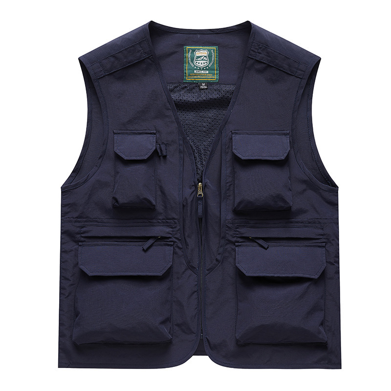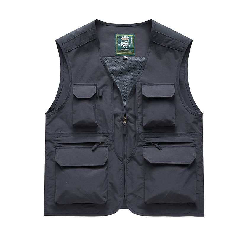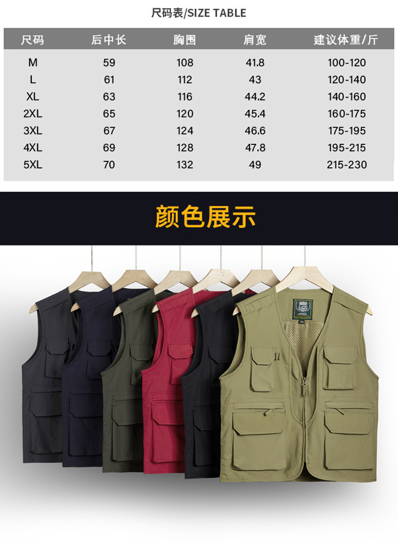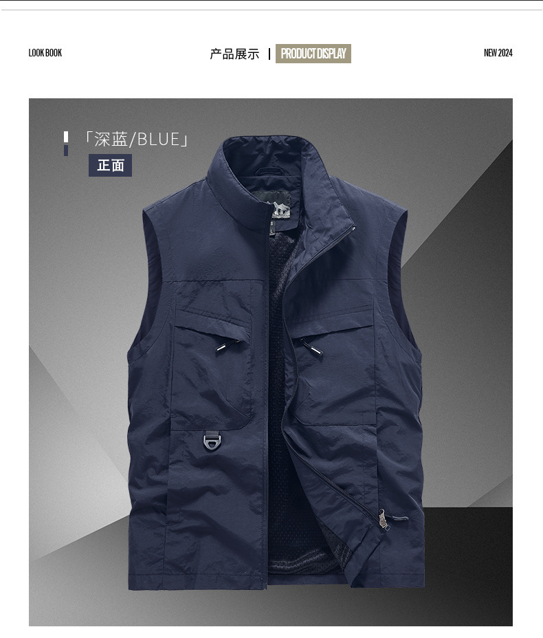 Four Seasons 중년 및 노인 남성 조끼 얇은 아빠 민소매 칼라 멀티 포켓 빠른 건조 조끼 국경 간 플러스 사이즈 Waistcoat