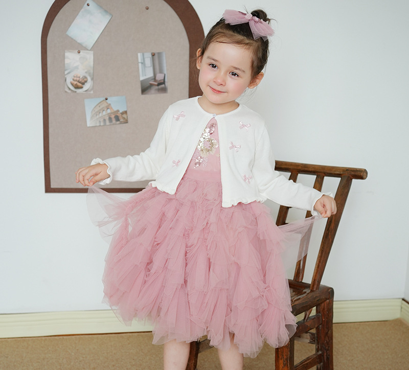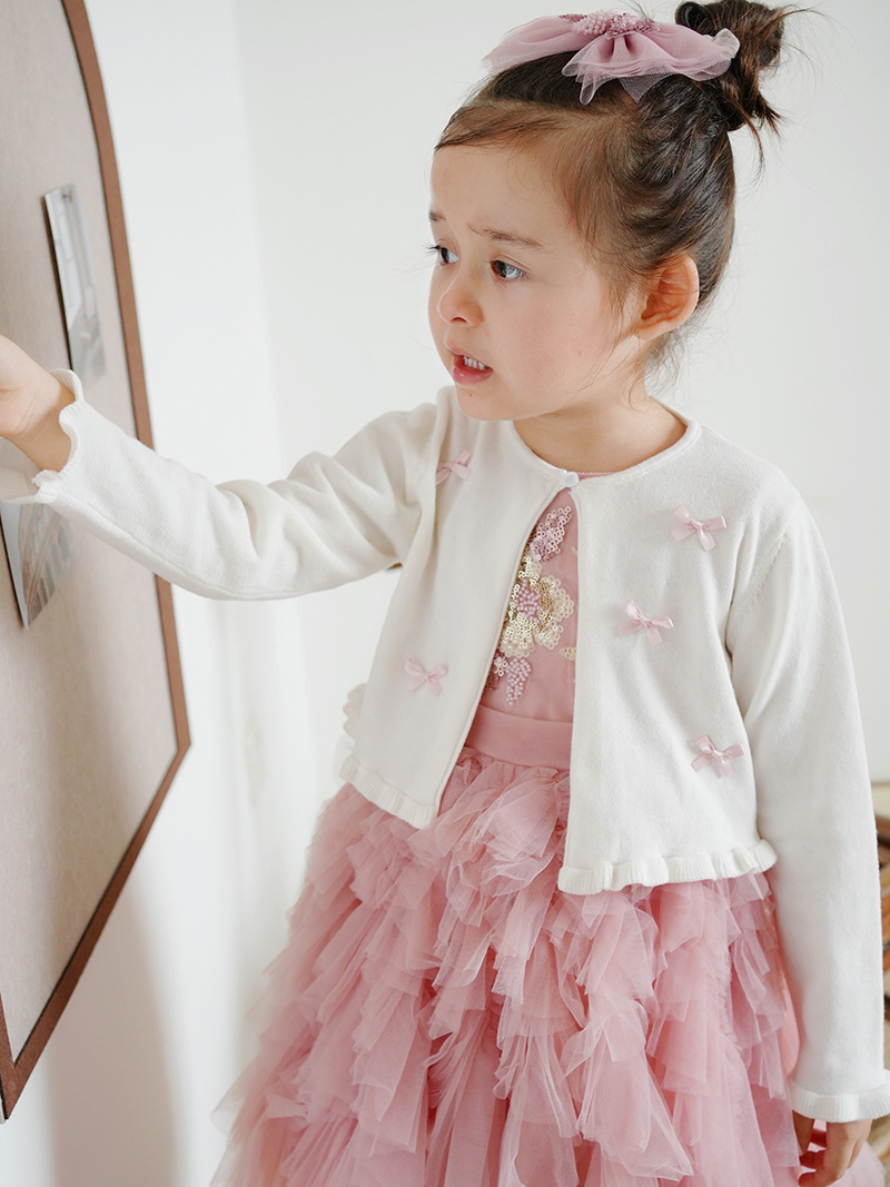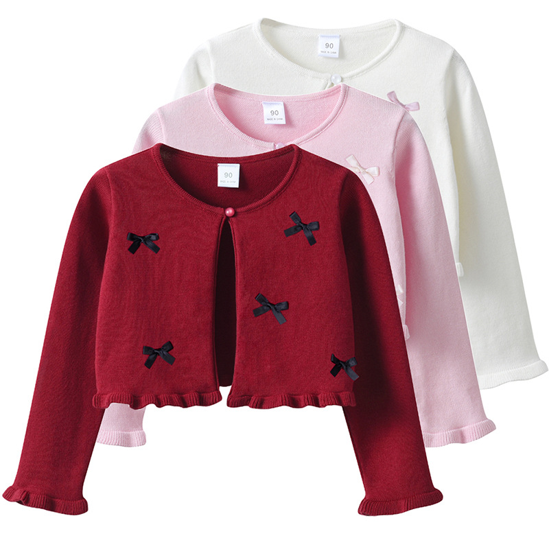 宝贝名称 :  蝴蝶结女童针织衫开衫外套披肩儿童空调衫