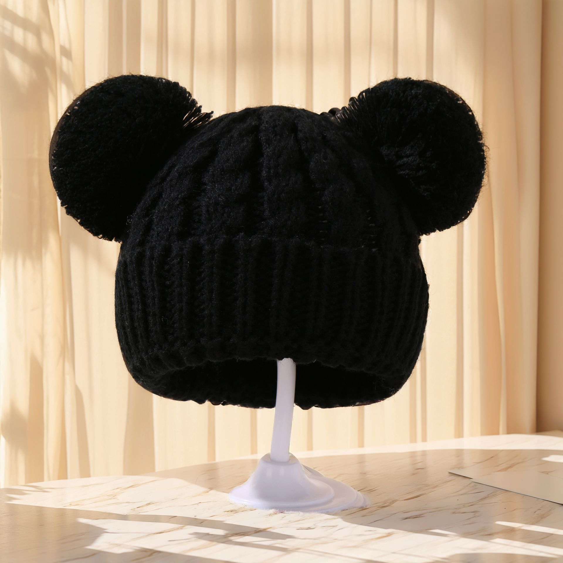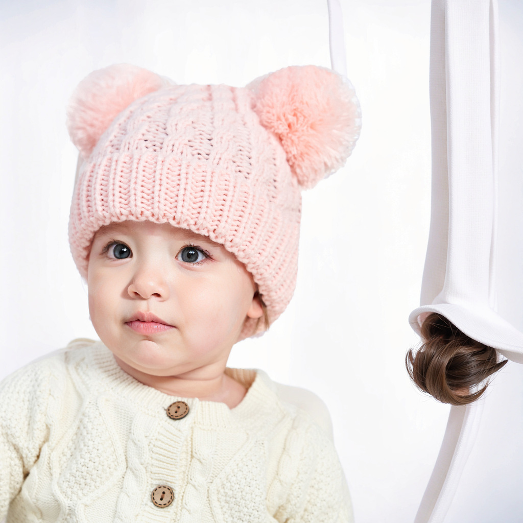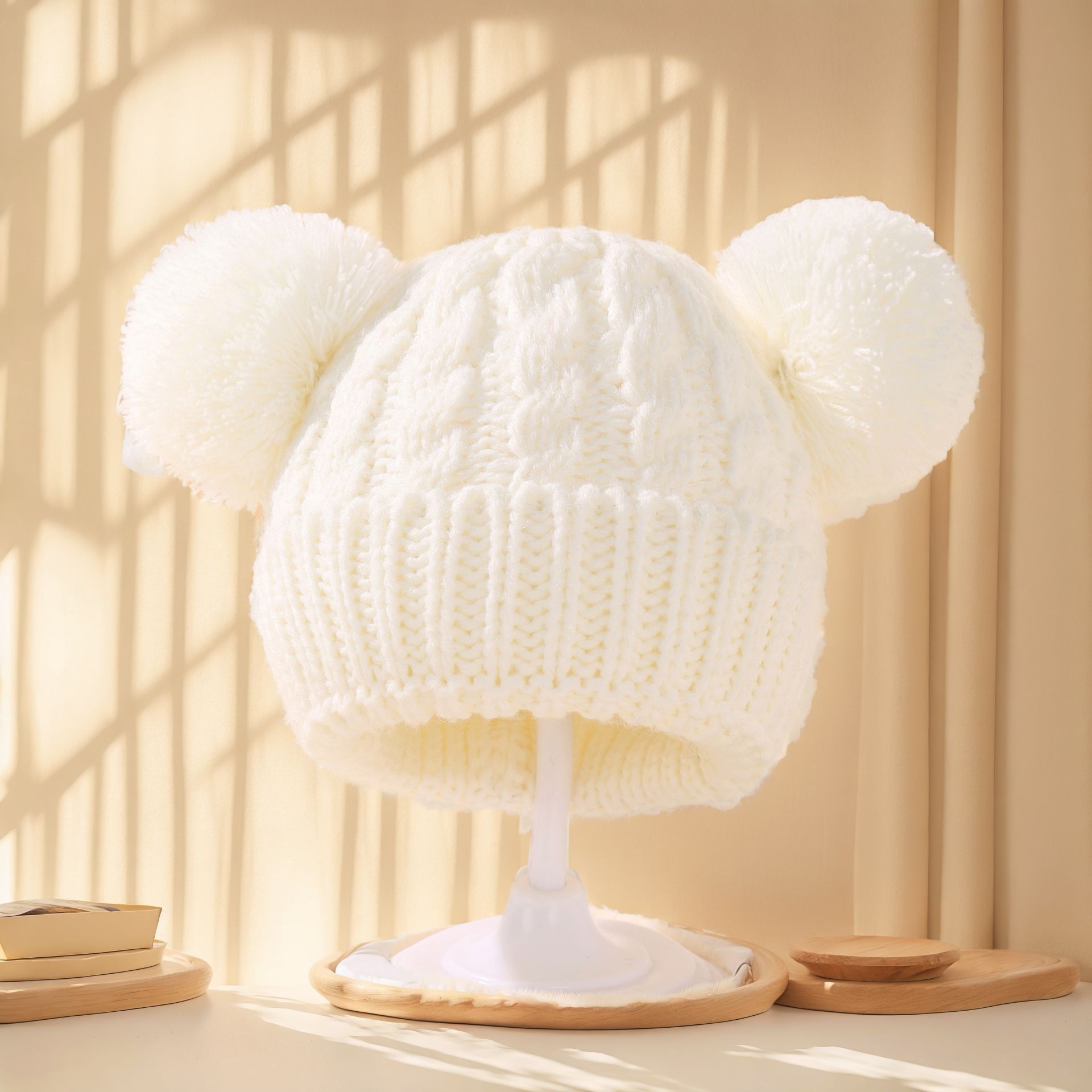 새로운 단색 트위스트 아크릴 울 더블 볼 어린이 모자 재고 가을과 겨울 따뜻한 아기 아기 모자