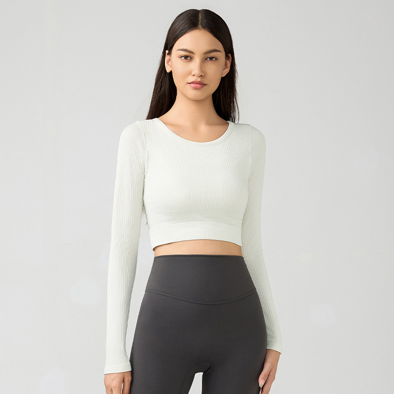 가을과 겨울 새로운 요가 의류 여성 스포츠 원활한 긴 소매 가슴 패드 필라테 달리기 피트니스 탑 DAW197스토어 가기
