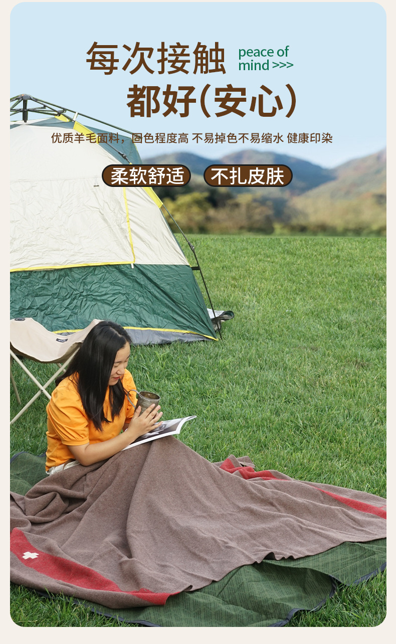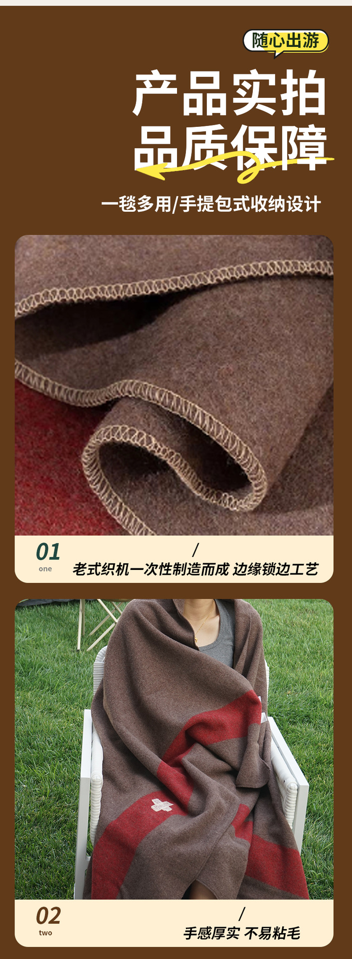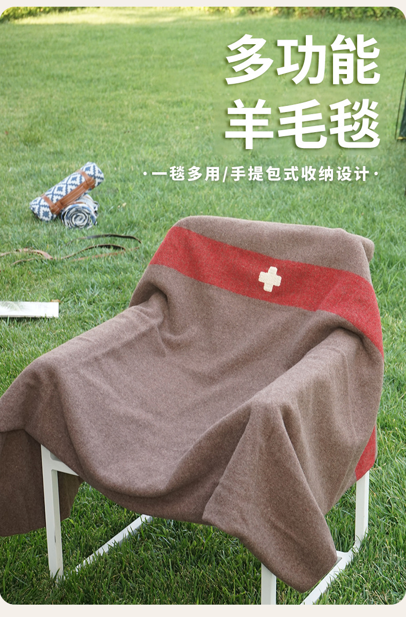두양 공장 100% 양모 담요 레트로 스타일 자수 갈색 야외 휴대용 캠핑 담요