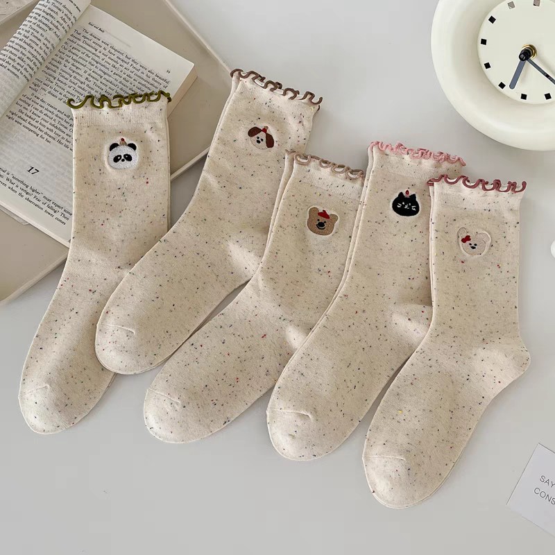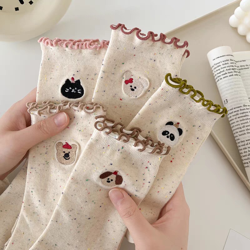 만화 동물 귀여운 레이스 양말 어린이 순수 코튼 중간 길이 양말 봄과 가을 일본 스타일 아이디어 모래 귀 사이드 더미 양말스토어 가기