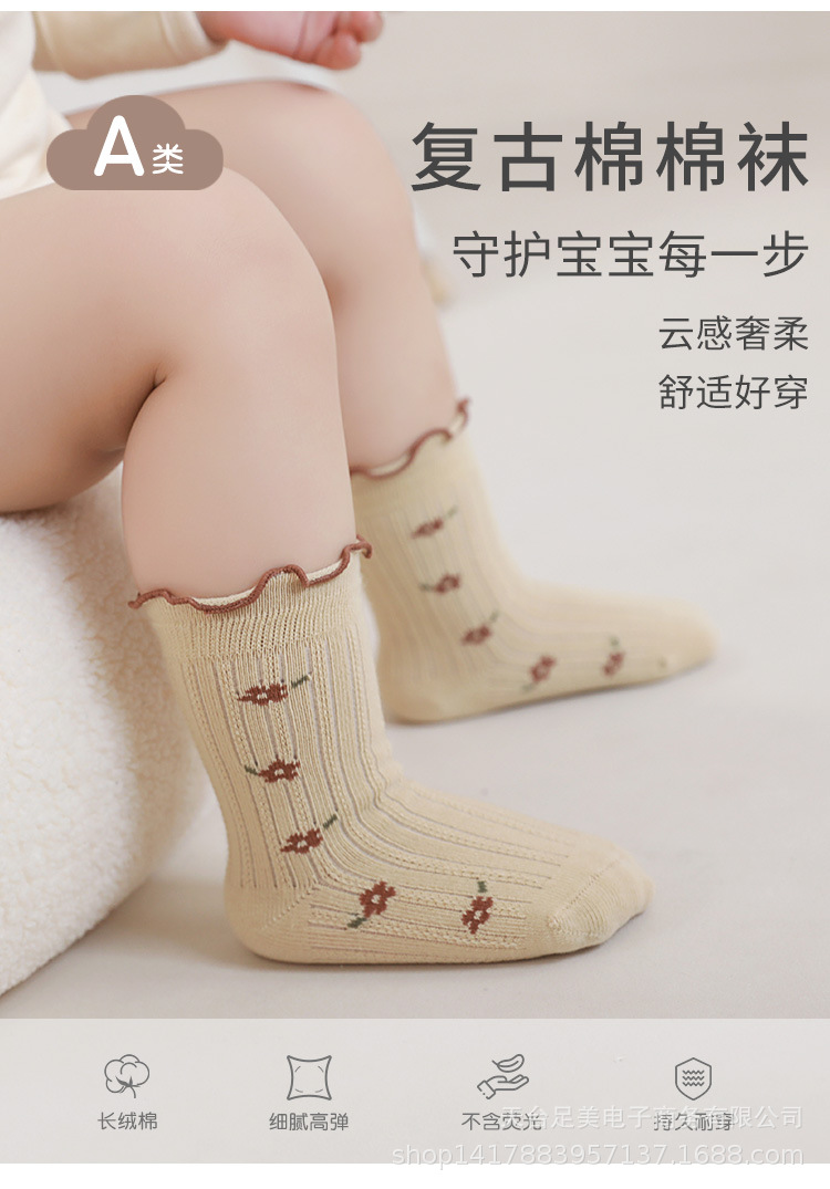 가을 신생아 면 양말 아기 양말 뼈없는 느슨한 발 레트로 곰팡이 레이스 공주 아기 양말스토어 가기