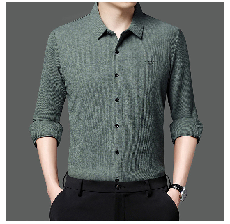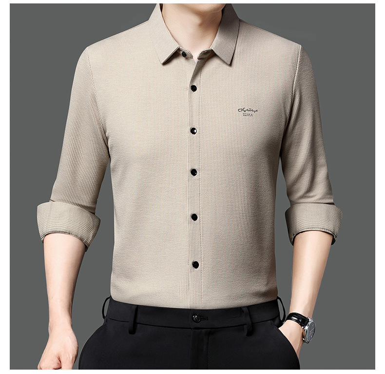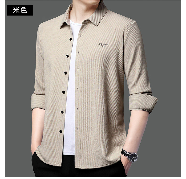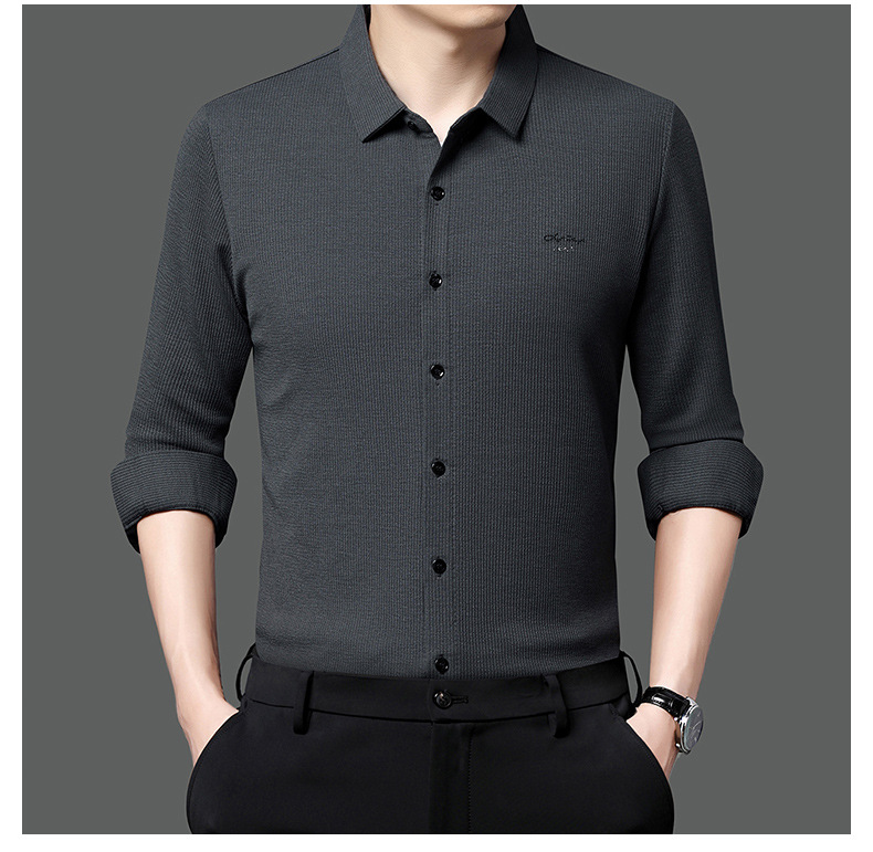 남자 줄무늬 긴팔 뜨거운 시추 셔츠 봄과 가을 새로운 간단한 비즈니스 캐주얼 올 매치 젊은 및 중년의 탑 아빠 셔츠