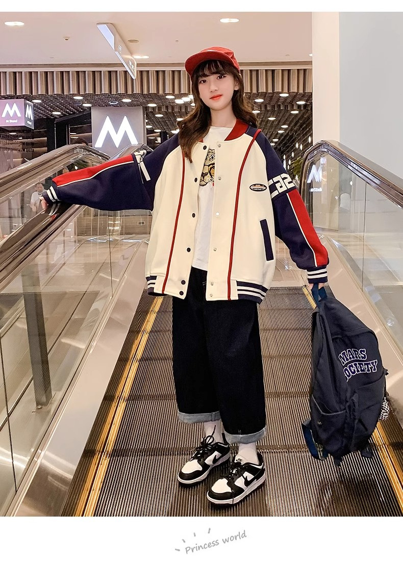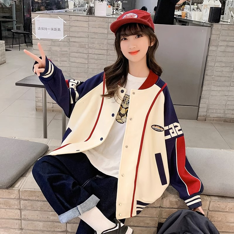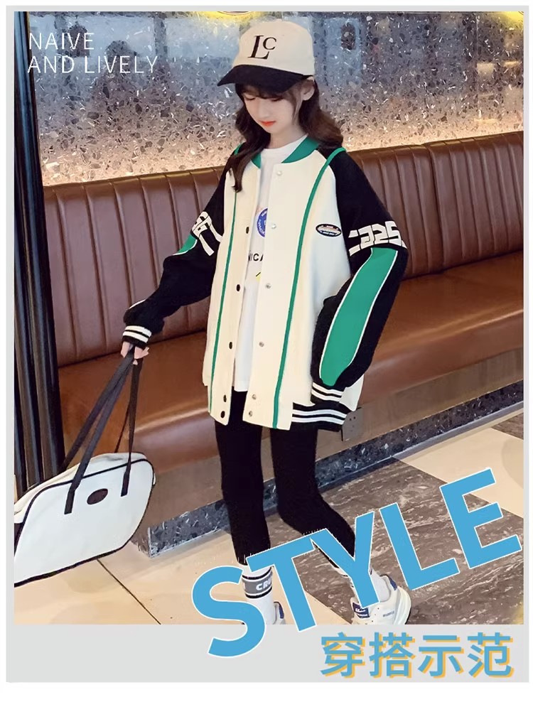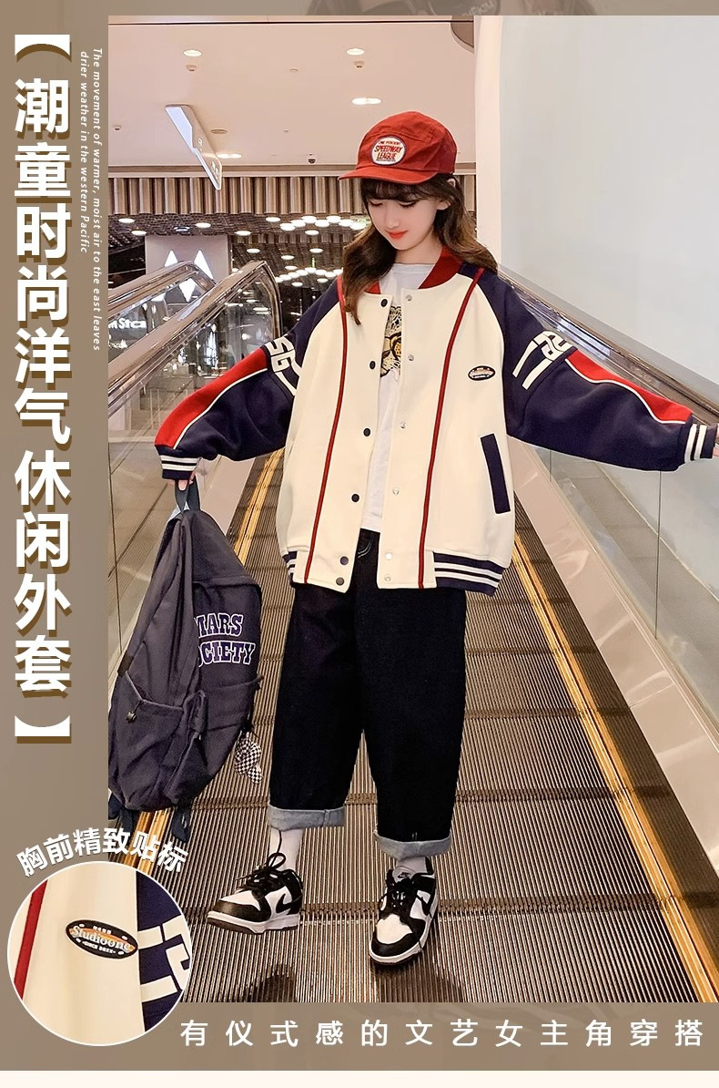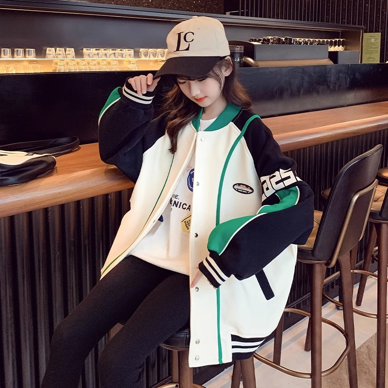 소녀 코트 봄과 가을 2024 새로운 스타일 서양식 소녀 캐주얼 재킷 느슨한 아이들의 가을 야구 의류 유행스토어 가기