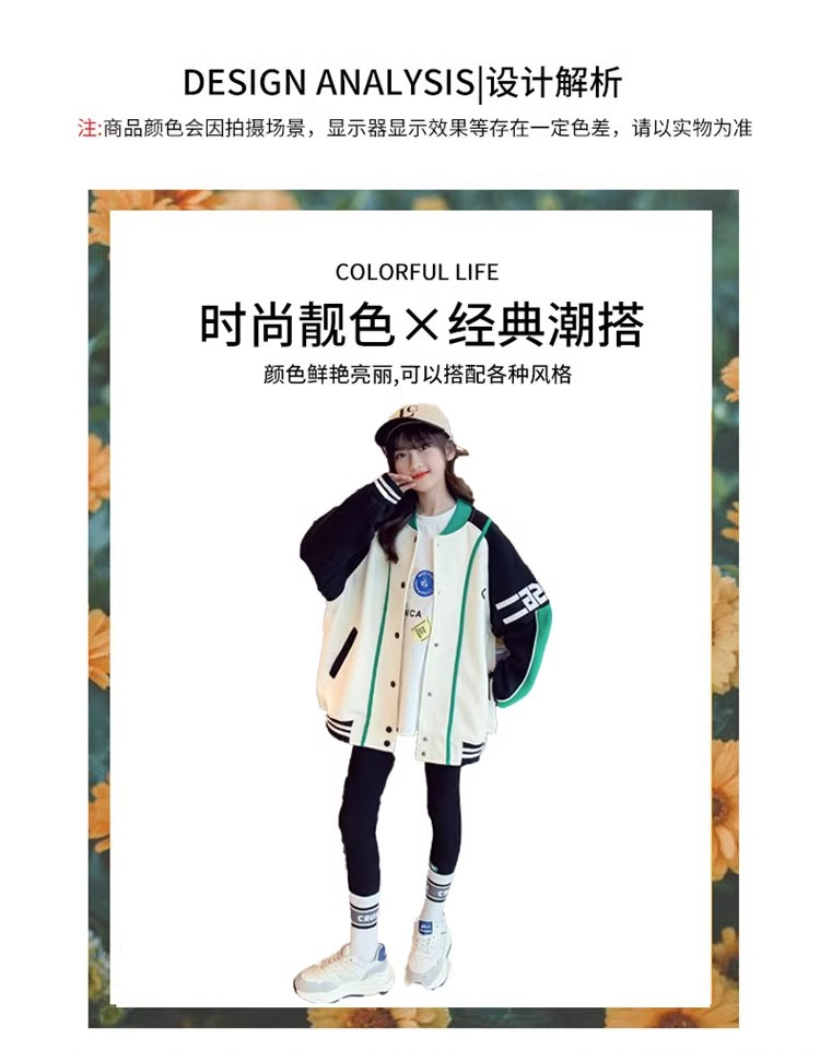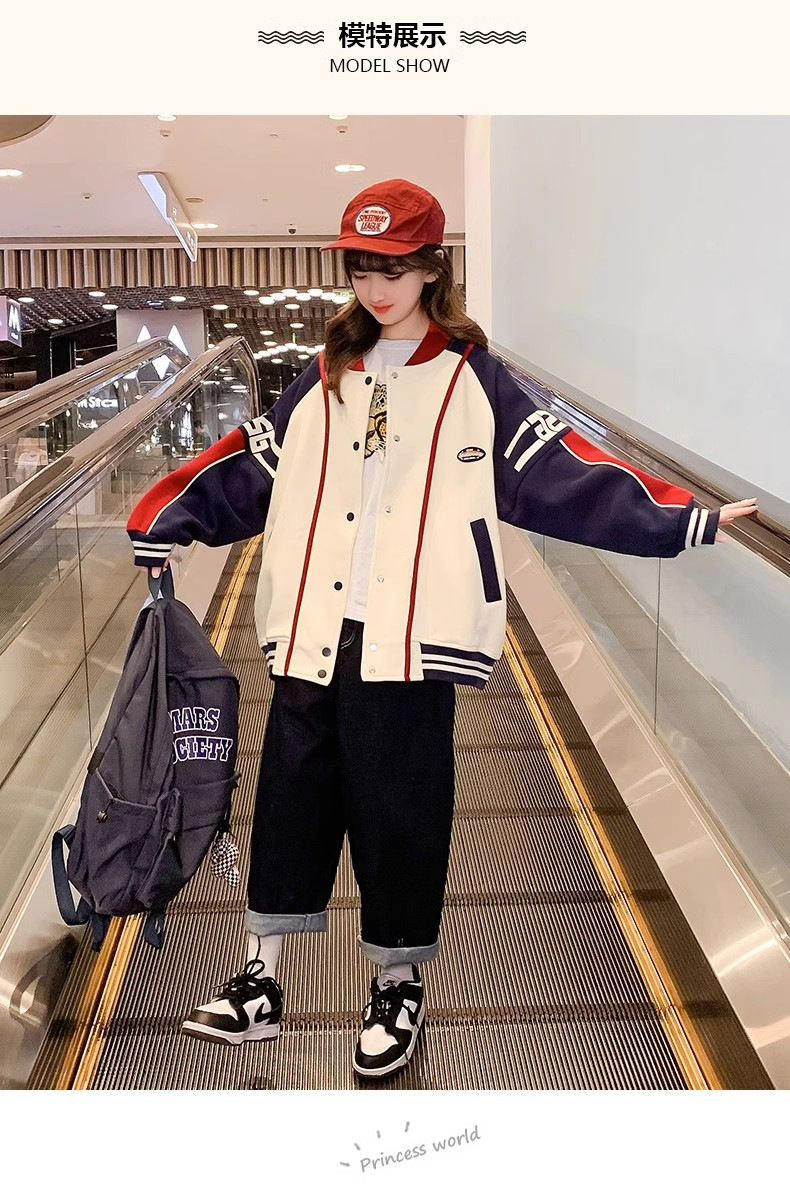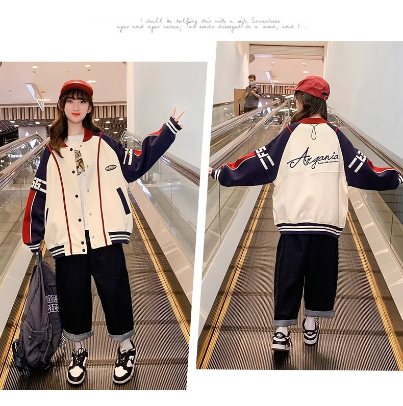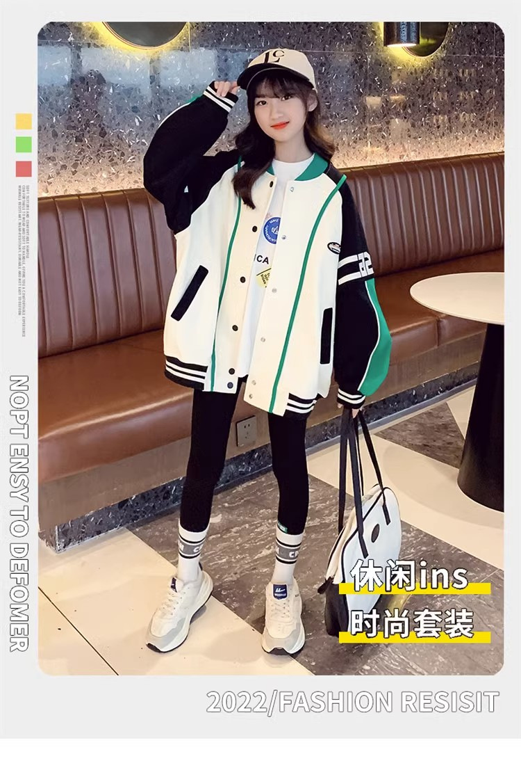 소녀 코트 봄과 가을 2024 새로운 스타일 서양식 소녀 캐주얼 재킷 느슨한 아이들의 가을 야구 의류 유행스토어 가기