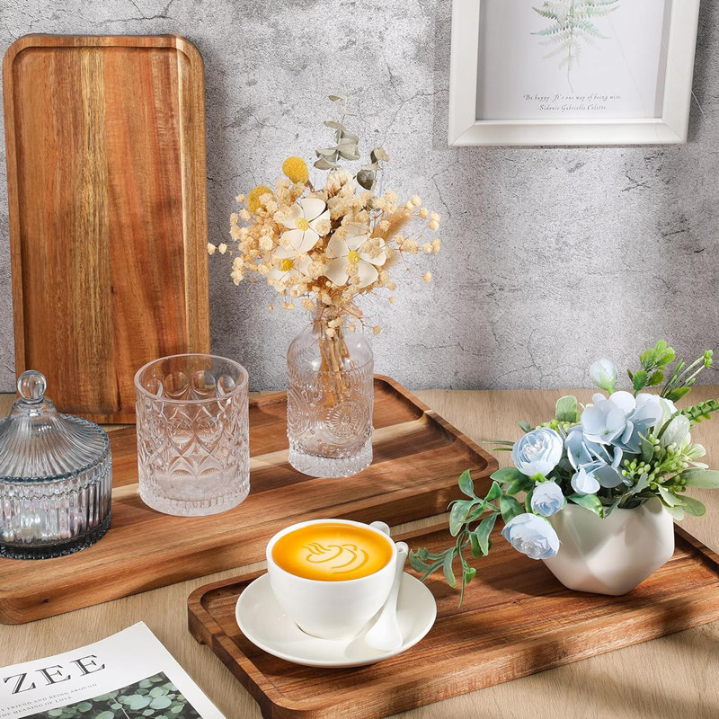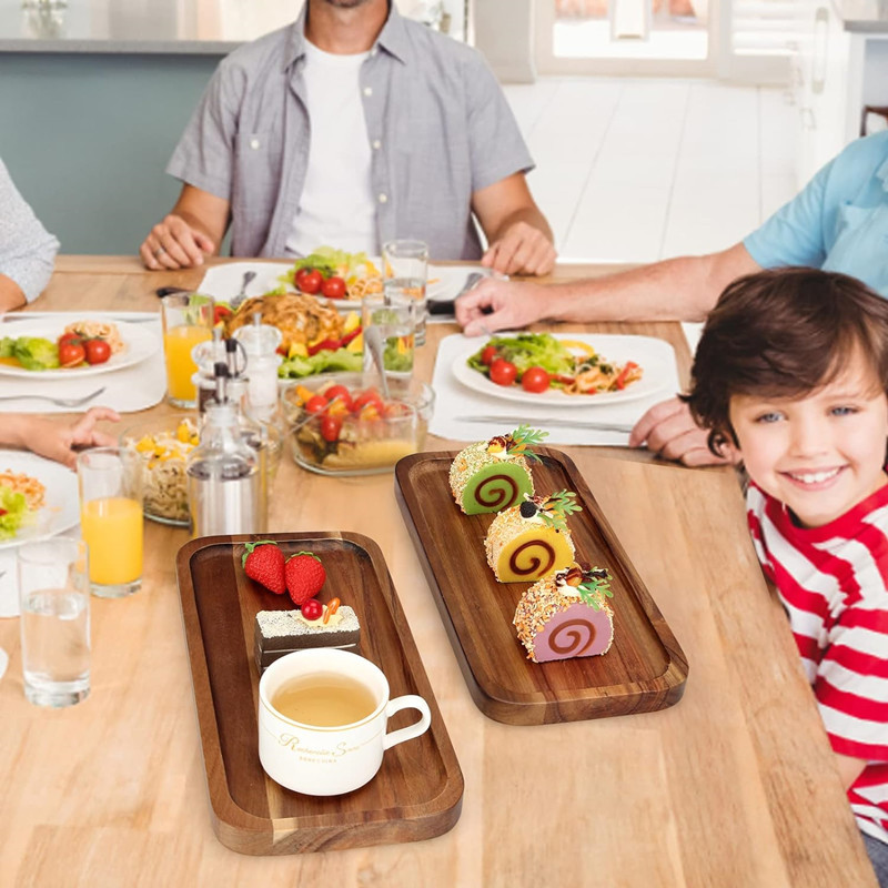 나무 판 아카시아 나무 트레이 직사각형 나무 접시 오후 차 스낵 스시 나무 트레이 쿵푸 티 트레이스토어 가기