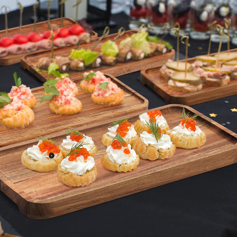 나무 판 아카시아 나무 트레이 직사각형 나무 접시 오후 차 스낵 스시 나무 트레이 쿵푸 티 트레이