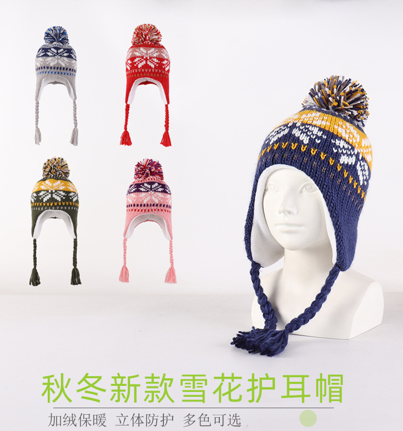 2024 새로운 가을, 겨울 부동액 아이슬란드 모피 눈송이 니트 모자 소녀 야외 따뜻한 귀 보호 모피 공 모자