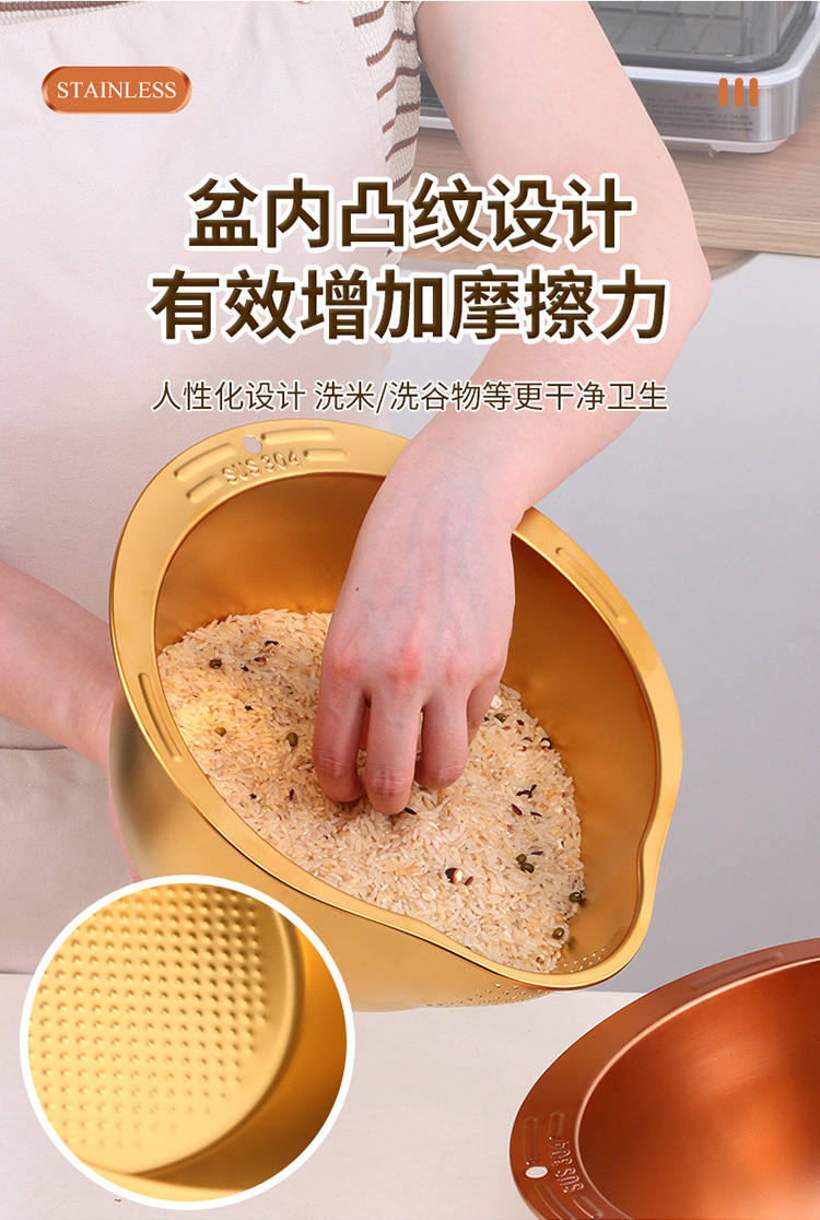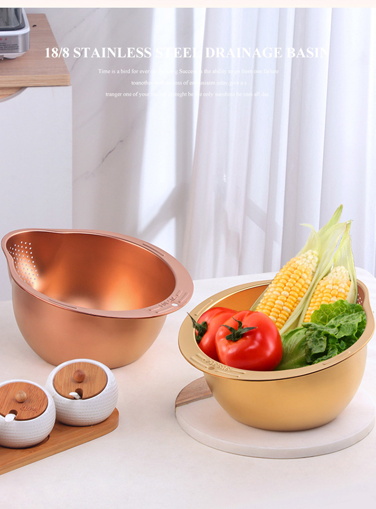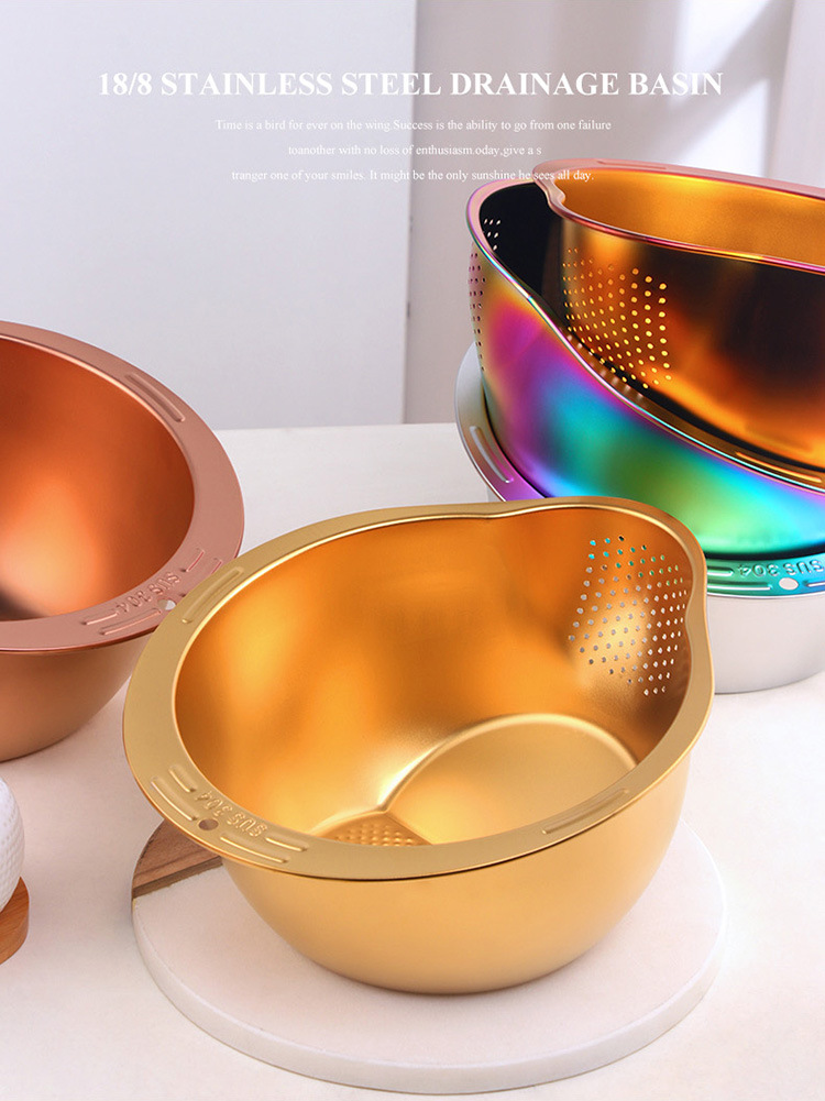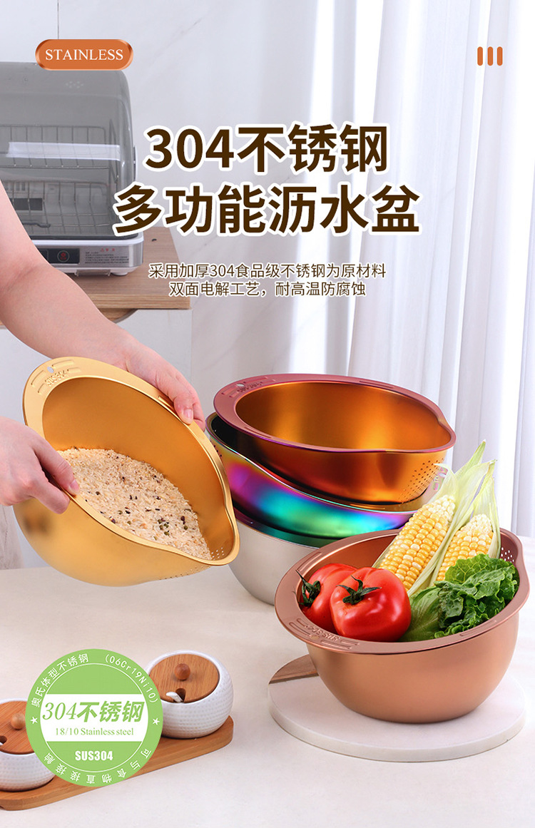 304 스테인레스 스틸 쌀 세척 분지 누출 분지 쌀 체 가정용 주방 야채 세척 과일 및 야채 배수 물 필터 바구니
