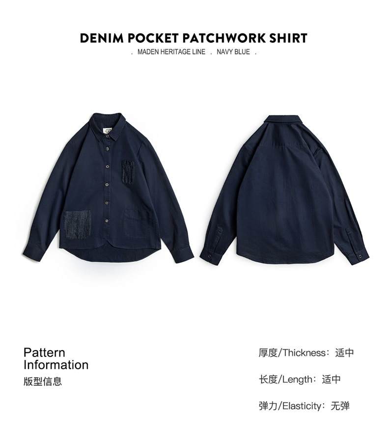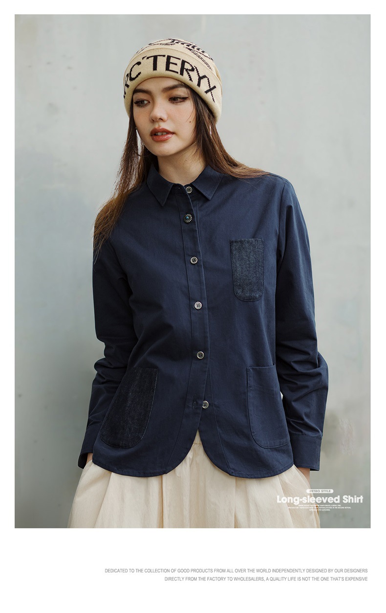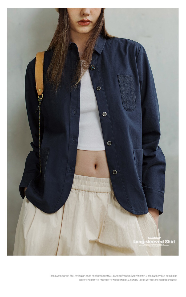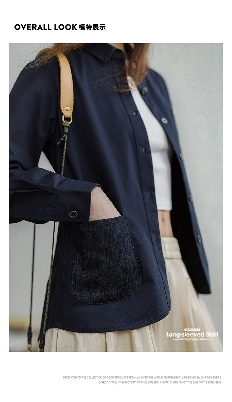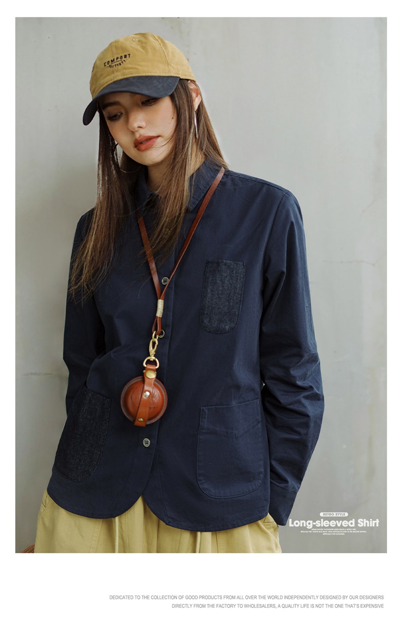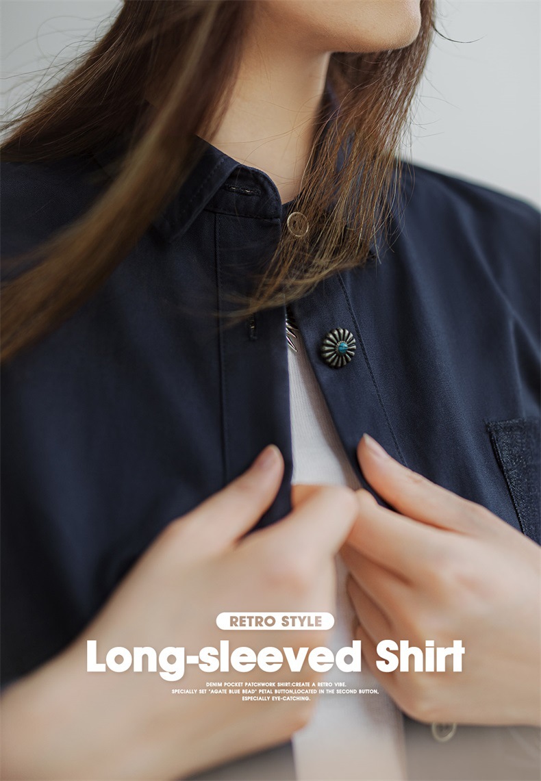 매든 빈티지 데님 포켓 바느질 셔츠 디자인 센스 캐주얼 코튼 재킷 올 매치 스택 탑 봄과 가을 여성스토어 가기