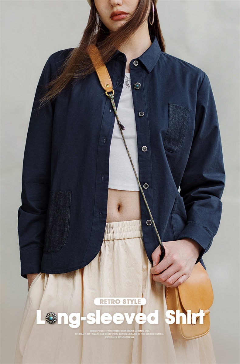 매든 빈티지 데님 포켓 바느질 셔츠 디자인 센스 캐주얼 코튼 재킷 올 매치 스택 탑 봄과 가을 여성