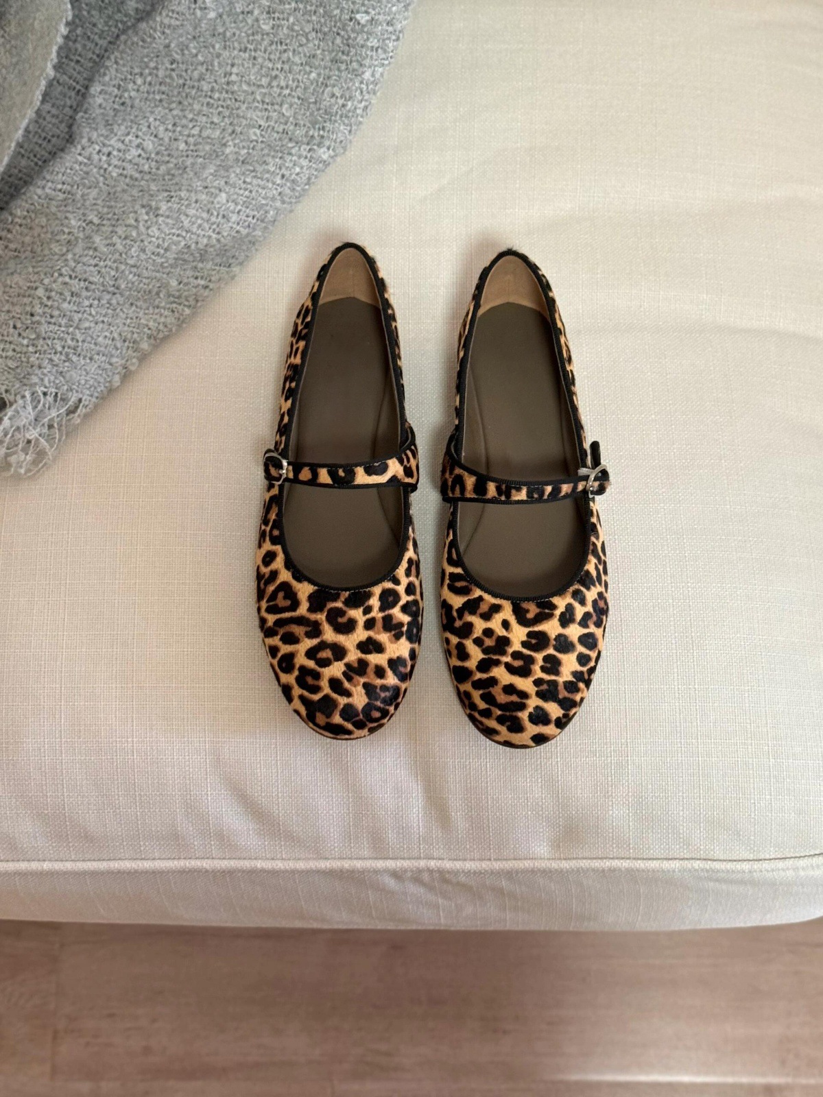 양가죽 버전 ~ 슈퍼 부드러운 바닥 가죽 레오파드 무늬 메리 제인 신발 여성 가을 발레 플랫 슈즈 버클 스트랩 국자 신발