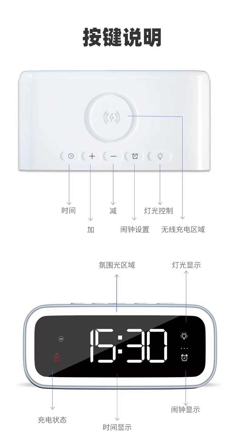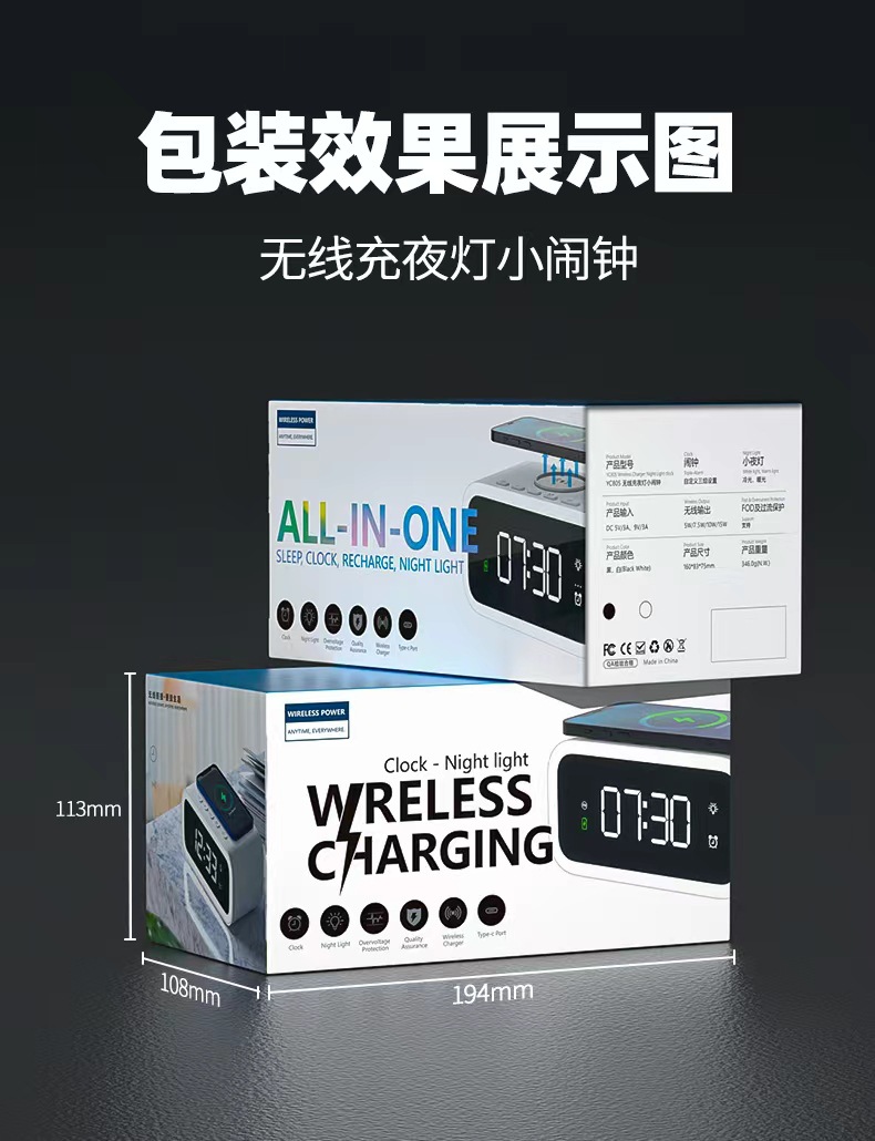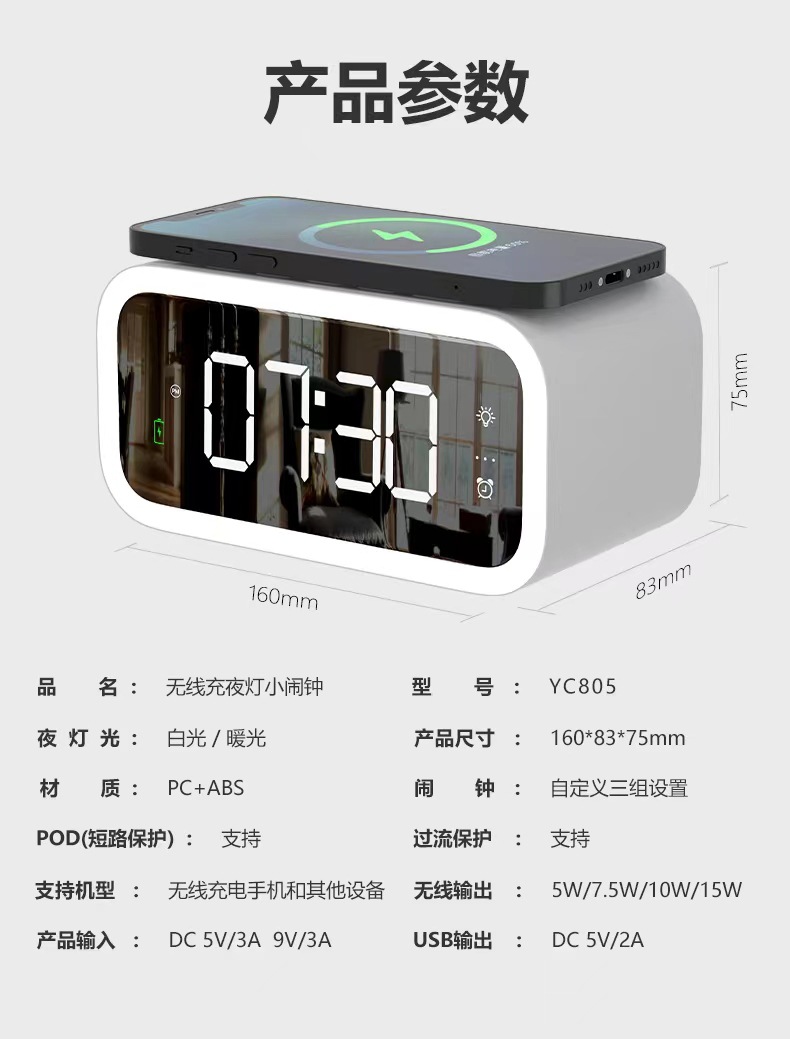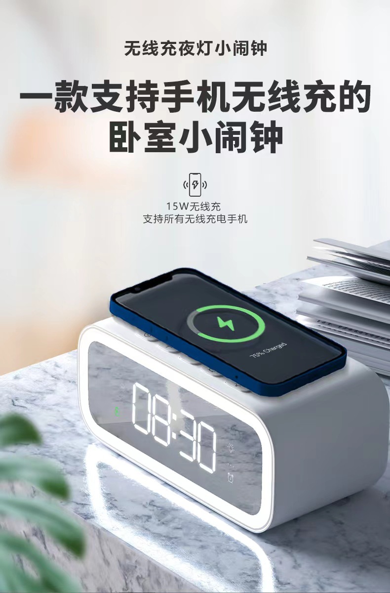 새로운 창조적 인 접이식 6 대 1 전자 시계 무선 충전 야간 조명 작은 알람 시계 스마트 알람 시계 침대 옆 야간 조명