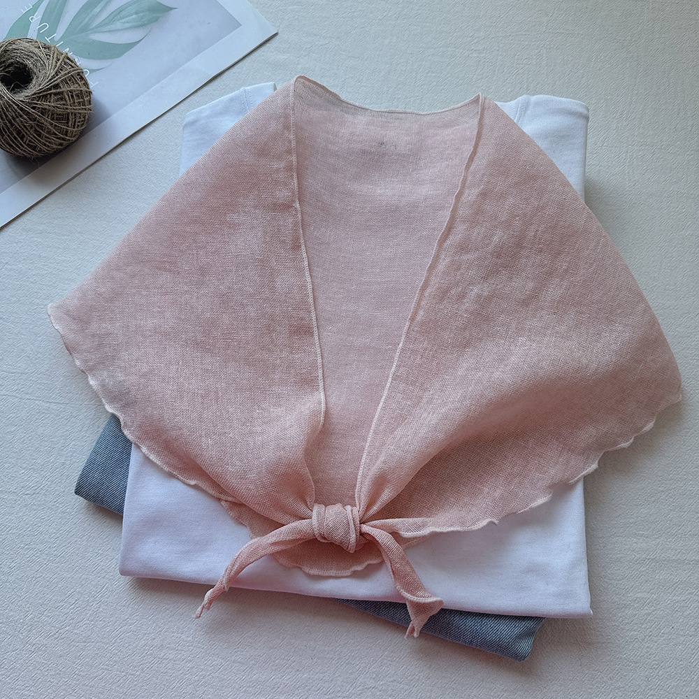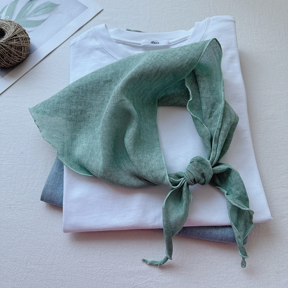 순수 린넨 예술적 삼각형 스카프 여성의 얇은 피부 친화적 인 통기성 작은 스카프 우아한 올 매치 게으른 목 보호 스카프