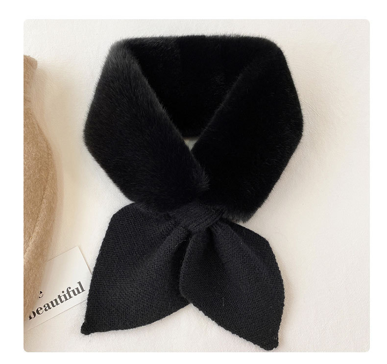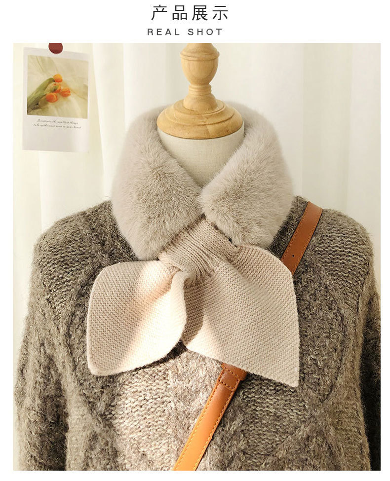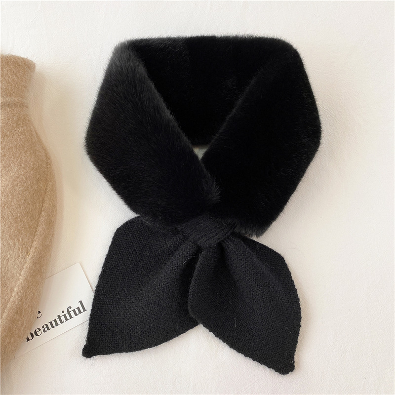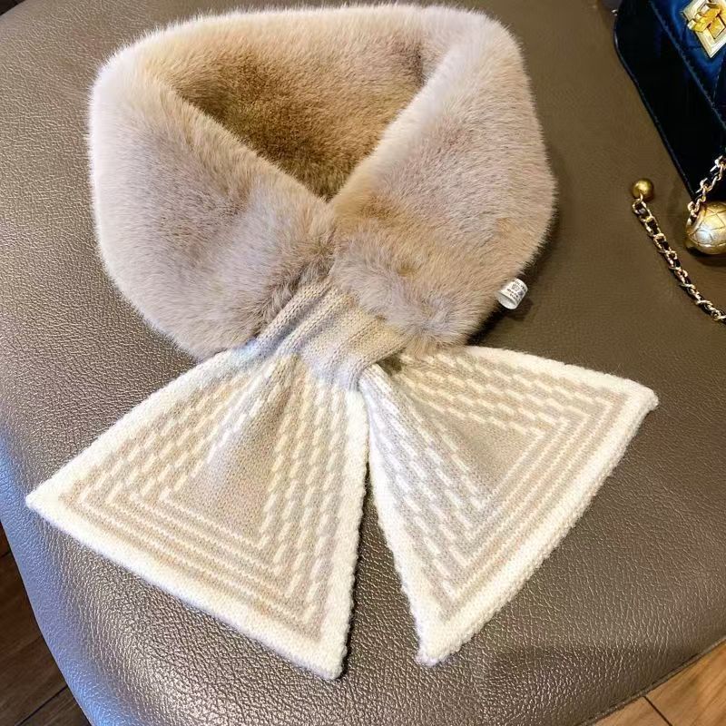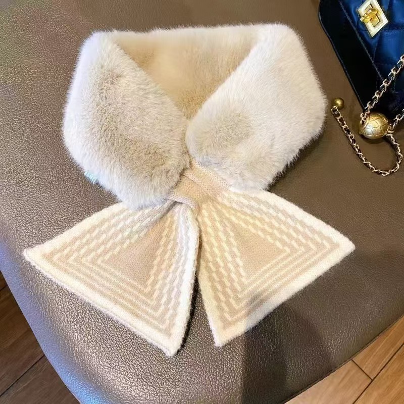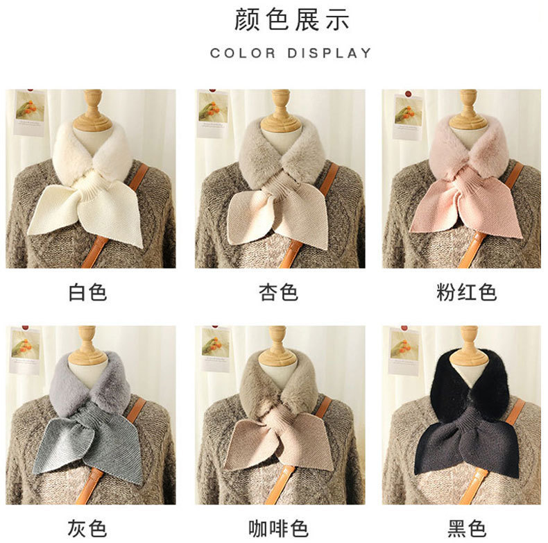 한국 신상 니트 스티치 퍼 스카프 인조 렉스 토끼털 크로스 퍼 스카프 패션 겨울 보온 방한