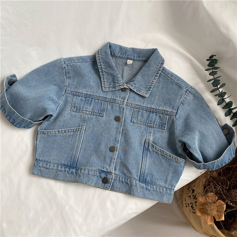 GL-kids 한국판 봄 신상 아동용 레터 프린트 데님 재킷 남녀 아기용 레트로 데님 재킷