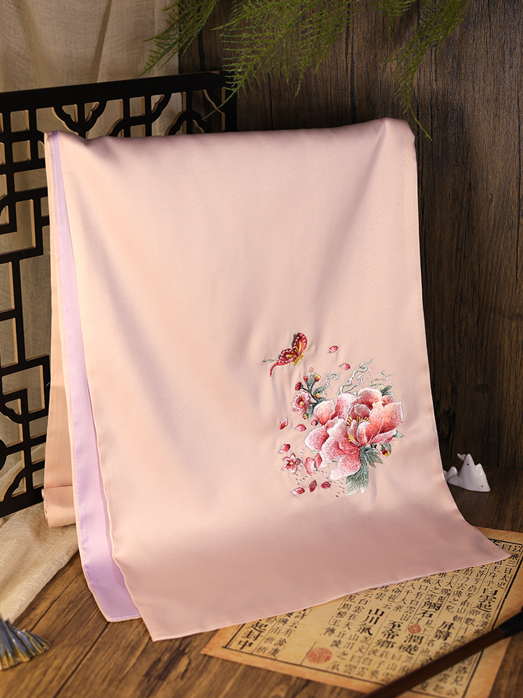 소주 빈티지 자수 스카프 여성 실크 수제 소주 자수 스카프 노인 어머니를위한 국가 스타일 청삼 목도리