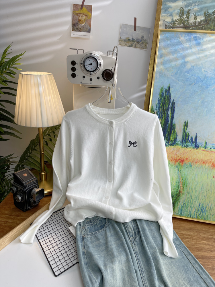 니트 카디건 가을 활 자수 소프트 왁스 편안한 재킷 라운드 넥 느슨한 스웨터 긴 소매 최고 여성 4719스토어 가기