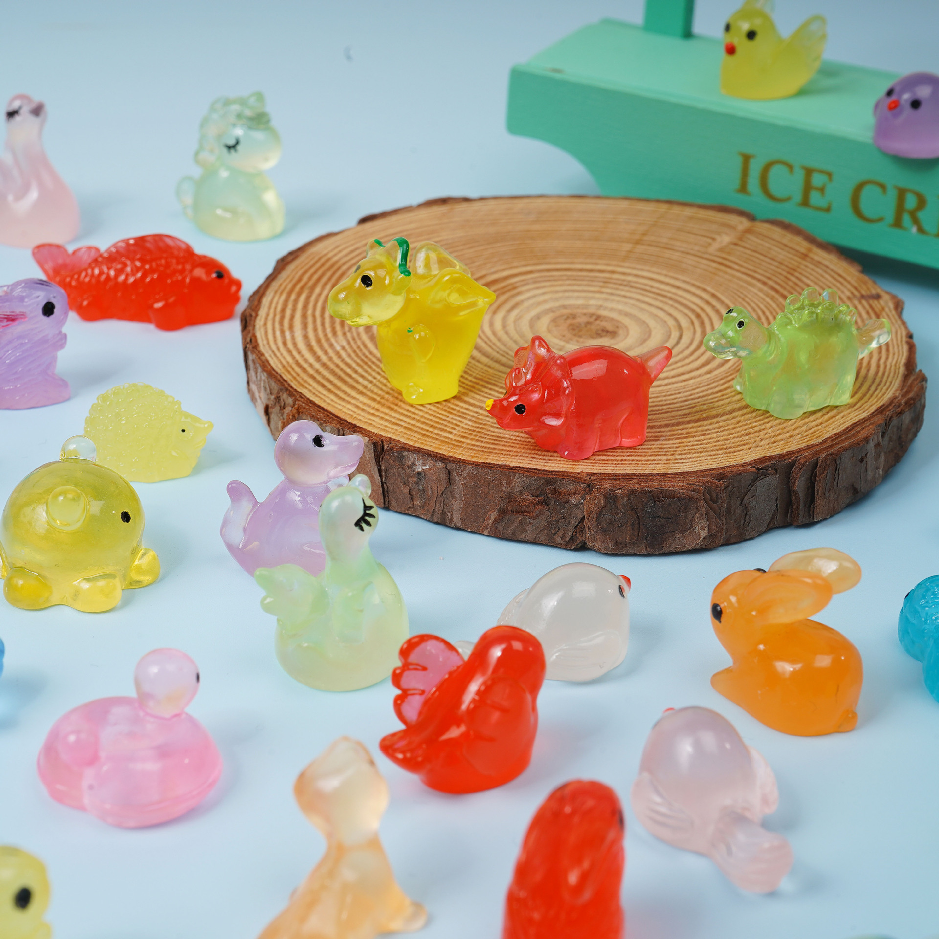 마이크로 풍경 풍경 빛나는 작은 장식품 수지 작은 동물 빛나는 장신구 토끼 강아지 diy 액세서리 바탕 화면스토어 가기